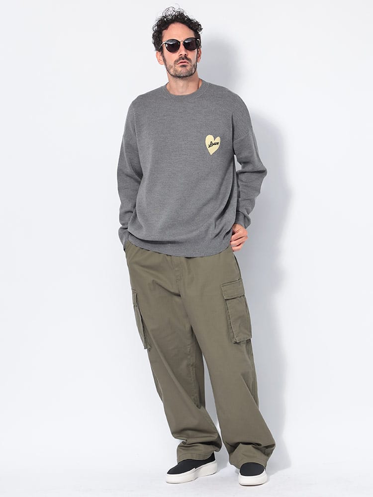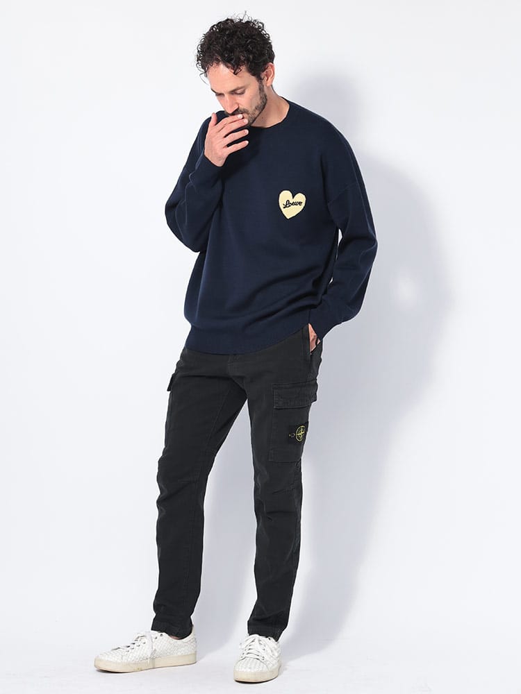 ミディアムウェイトのウールニットを採用したセーター。