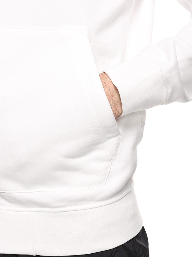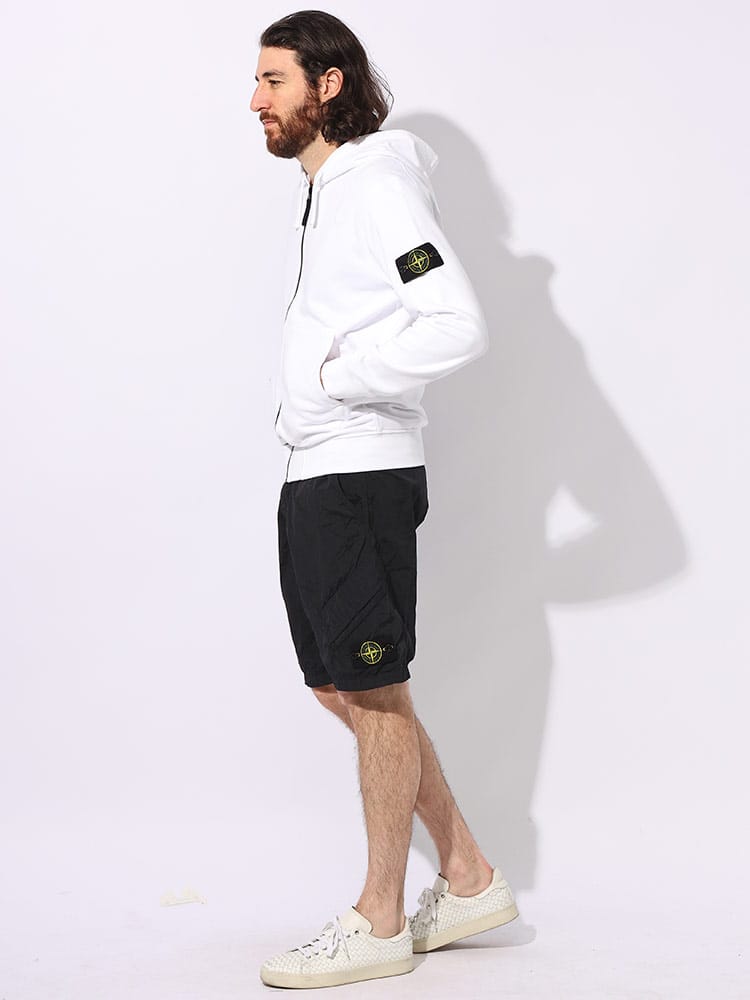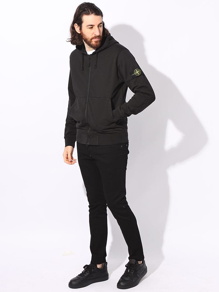 スタイルはレギュラーフィット。フードの縁にドローストリング入り。斜めの挿入口にコットンテープを施したパッチポケット。ステッチ入り。左袖にStone Islandのバッジ付き。袖口と裾はリブ編み。ファスナーで開閉します。