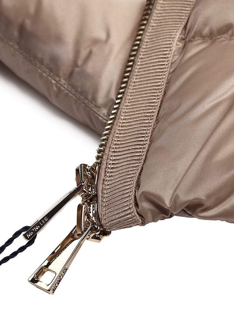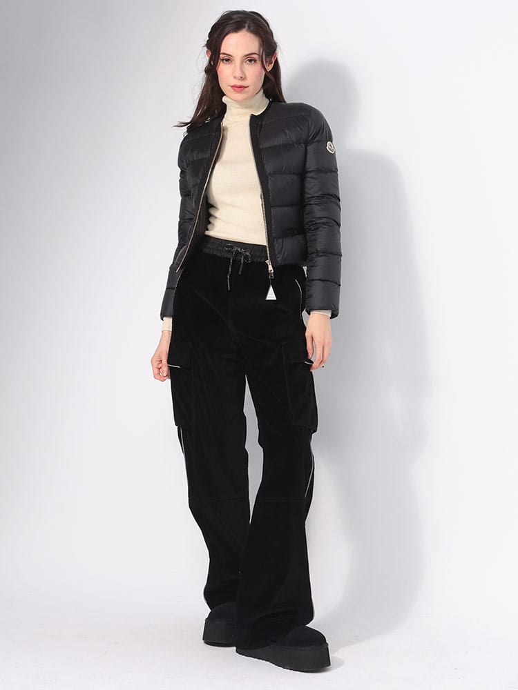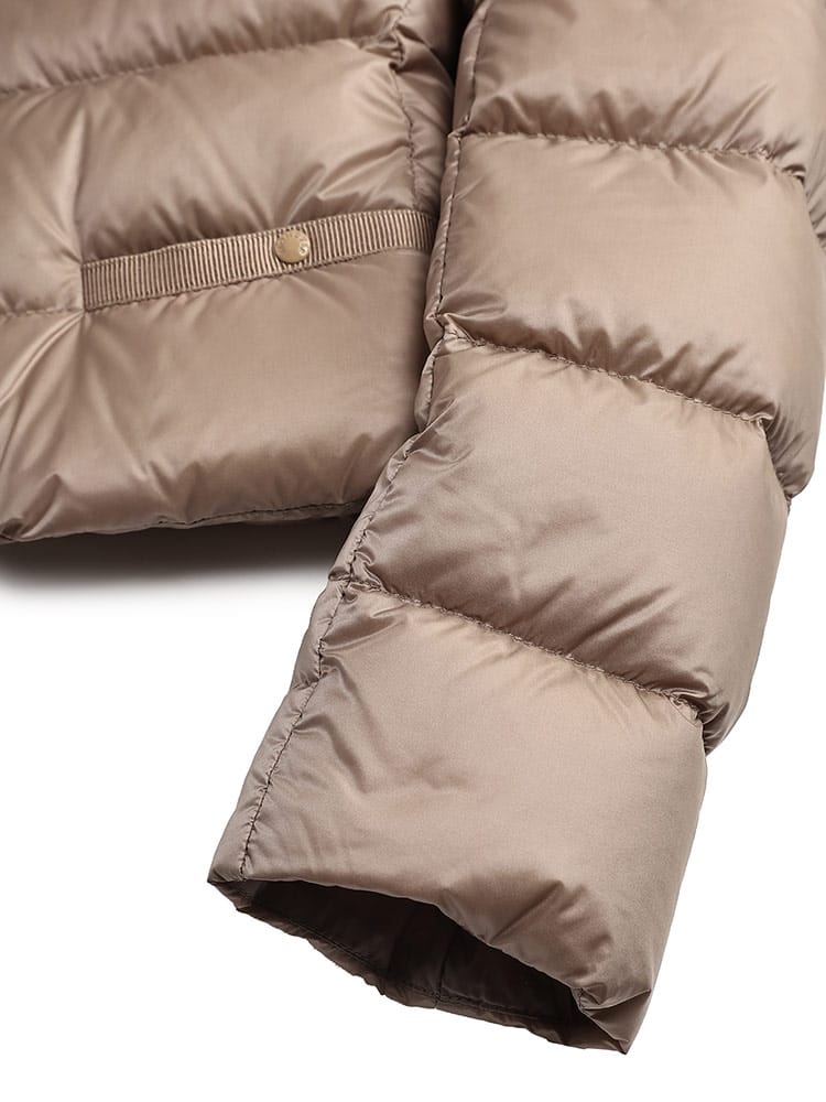 機能的なスタイルを代表するLaurineショートダウンジャケットです。軽量ナイロン素材を使用し、サテンのような仕上げを施したデザインです。トーン・オン・トーンのグログラン素材のトリミングと、スリムなフィットが特徴です。ワークウェアにもイブニングウェアにも合わせられる、モダンで洗練されたスタイルです。