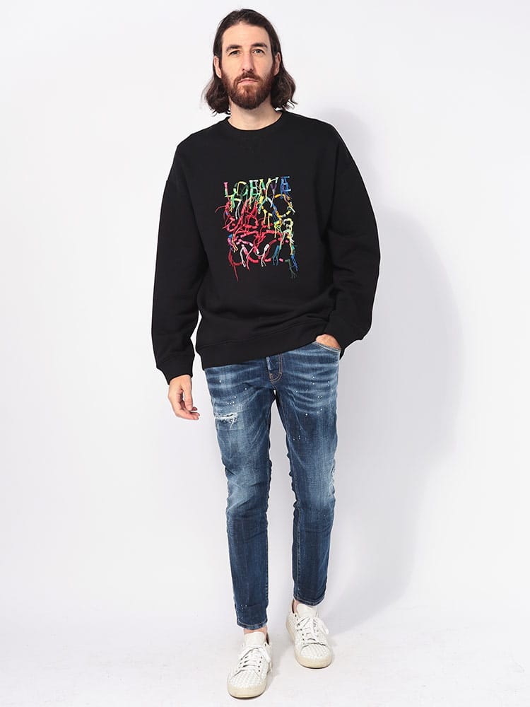 ミディアムウェイトのループバックコットンフリースを採用したスウェットシャツ。マルチカラーのクラフト感のあるLOEWEアナグラム刺繍が特徴的。