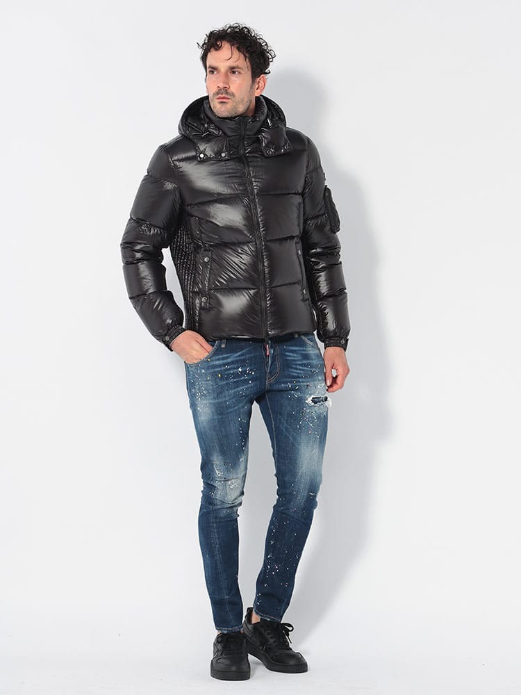 BELBOは、光沢のあるナイロン素材が上品なダウンジャケットです。袖のシガーポケットが特徴的で、ミリタリーテイストもプラス。フードは取り外し可能で、様々なコーディネートに対応できます。軽量ながらも保温性が高く、都会的なスタイルに合わせやすい一着です。