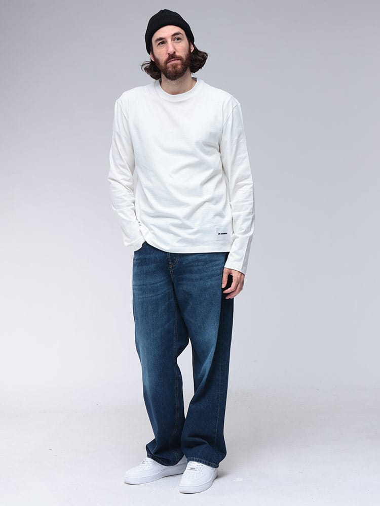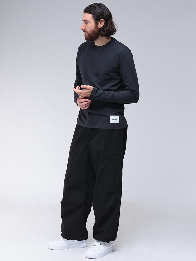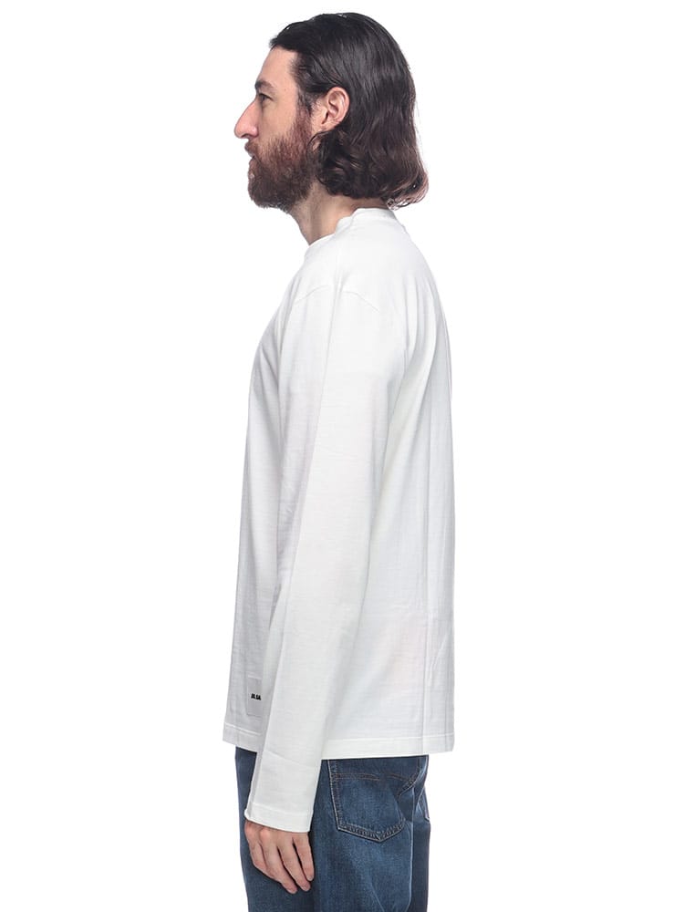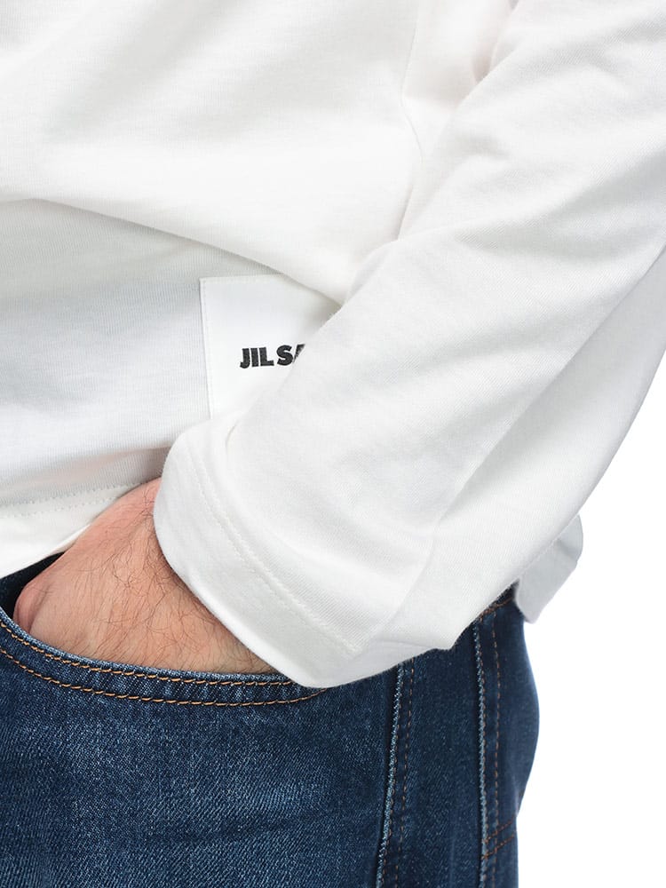 研ぎ澄まされたミニマリズムが光る、JIL SANDERの長袖Tシャツ。上質なコットン100%の生地は、肌に吸い付くような滑らかな肌触り。洗練されたワンポイントデザインが、シンプルながらも確かな存在感を放ちます。どんなスタイルにも溶け込むクルーネックは、一枚で着ても、インナーとしても活躍する万能な一着。大人のワードローブに欠かせない、上質な日常着です。