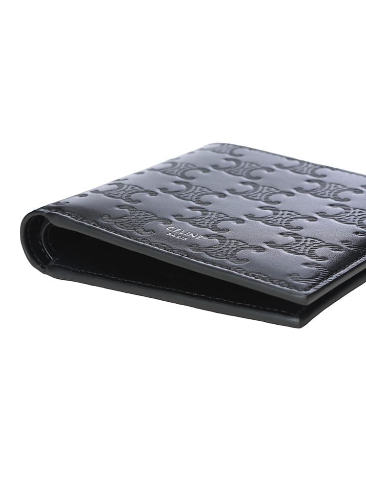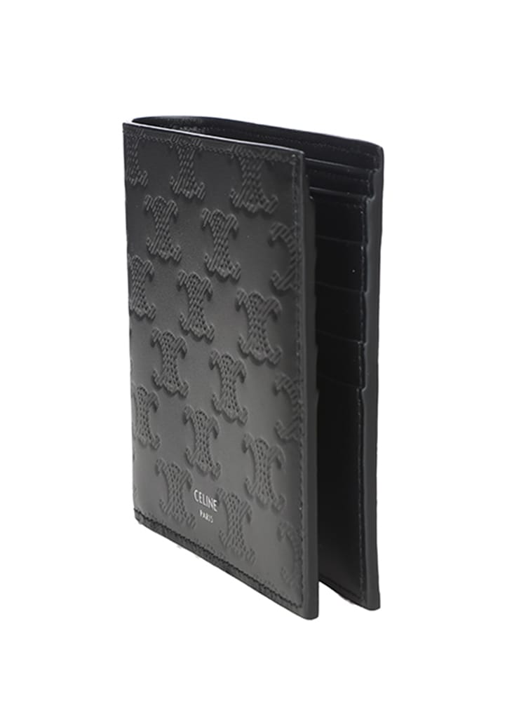 トリオンフエンボス カーフスキン 二つ折り財布は、アイコニックなトリオンフモチーフがエンボス加工されたエレガントな逸品です。上質なブラックカーフスキンを使用し、使うほどに手に馴染む質感と光沢が楽しめます。コンパクトながらも収納力があり、カードケースとしての機能も充実。洗練されたデザインは、ギフトにも最適で、大人の男性の手元を格上げするアイテムです。