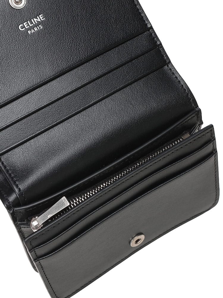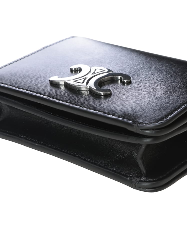 トリオンフ シャイニーカーフスキン 二つ折り財布は、光沢のある上質なシャイニーカーフスキンに、アイコニックなトリオンフモチーフが輝く逸品です。コンパクトなサイズながら、収納力も兼ね備え、スマートに持ち運びたい方に最適。洗練されたデザインは、大人の男性の手元を上品に演出し、大切な方へのギフトとしても喜ばれること間違いなしです。