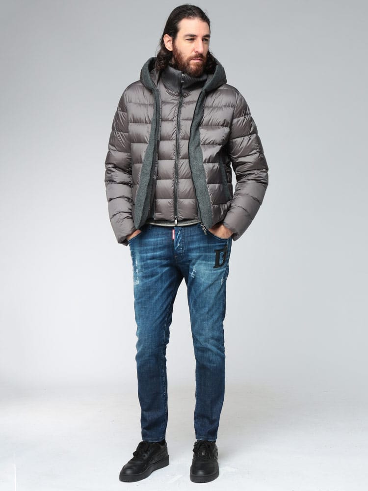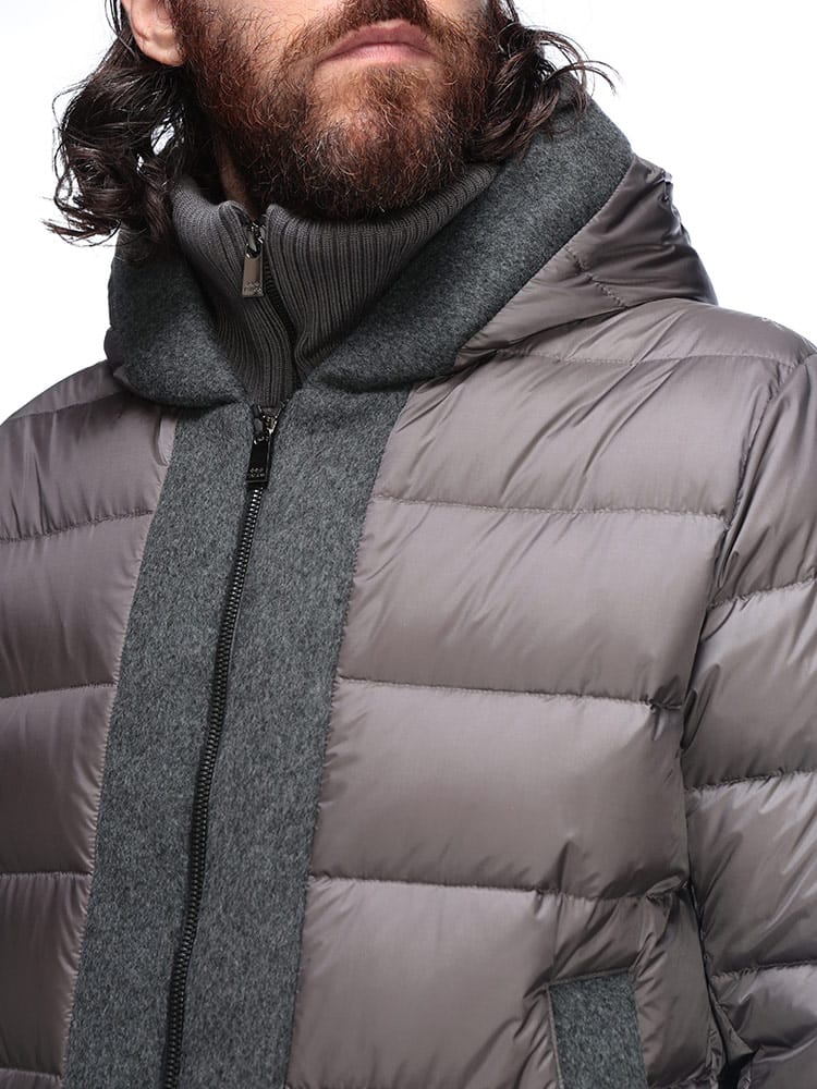「LIKO」ショートダウンジャケットは、ナイロンのボディにフード口や前立てなどの一部を上質なウール素材で切り替えた、異素材コンビネーションが魅力です。高級感のあるウールがカジュアルなダウンにエレガントな表情をプラス。リブ生地をあしらった首元や起毛素材の腰ポケットなど、防寒性と機能性に優れ、スタイリッシュに着こなせる大人のための冬の主役アウターです。