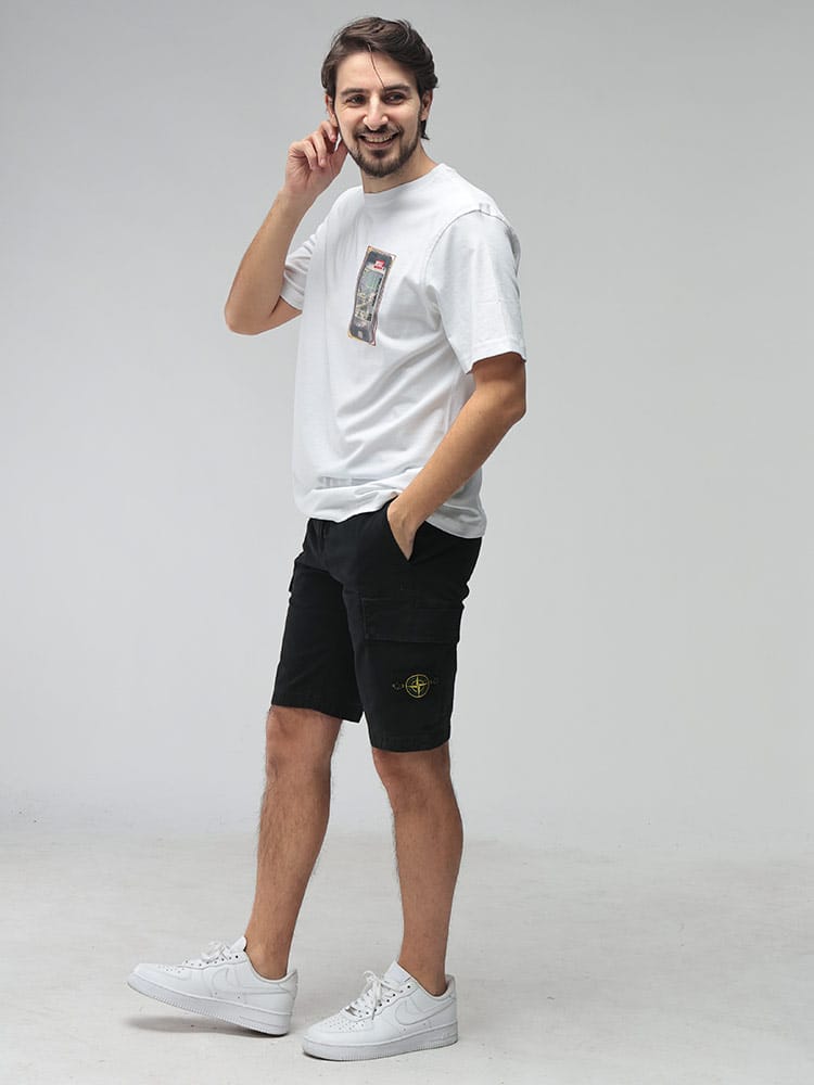 イタリア発の革新的なスポーツウェアブランド、STONE ISLAND(ストーンアイランド)から、洗練されたミリタリーテイストが漂うストレッチコットンショーツをご紹介します。ブランドが得意とするガーメントダイ加工を施した独特な風合いの生地は、綿98%にポリウレタン2%を混紡したストレッチ素材を採用しており、アクティブなシーンでもストレスフリーな穿き心地を実現。計5つの機能的なポケットを備えたカーゴデザインながら、シルエットは都会的でスマートな印象に仕上げています。左腿には象徴的なコンパスロゴのパッチを配し、春夏のシンプルになりがちなコーディネートに確かな存在感をプラス。ジップフライ仕様で着脱もスムーズな、大人の休日スタイルに欠かせない至極の一本です。