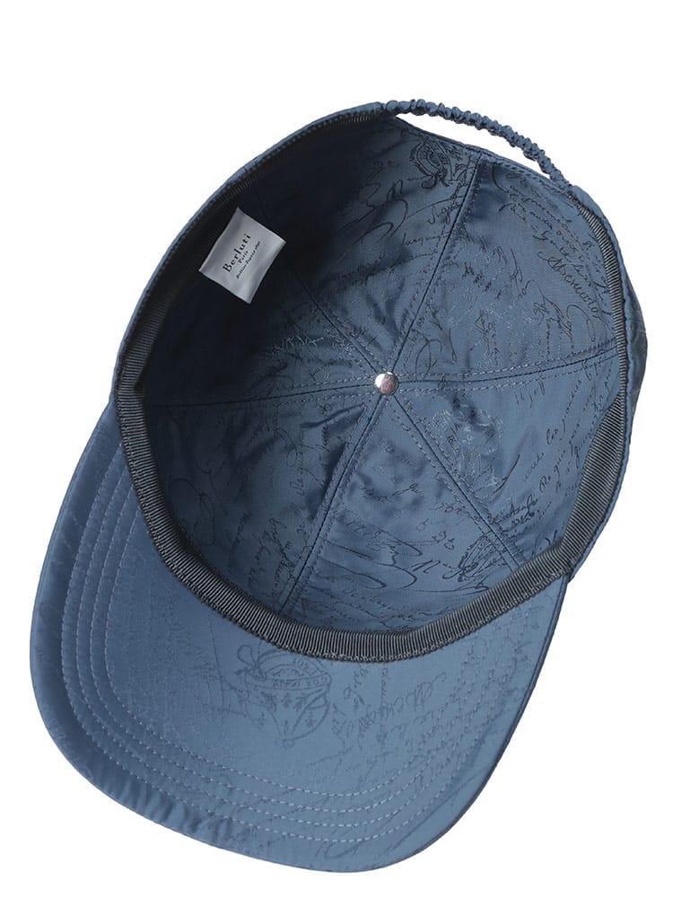 ベルルッティの象徴であるカリグラフィ「スクリット」を全面に配した、贅沢な6パネルキャップ。軽量で耐久性に優れたナイロン素材を採用し、スポーティーな中にメゾン特有の気品が漂います。裏地には肌当たりの良い綿混素材を使用し、快適な被り心地を追求。カジュアルな装いをクラスアップさせる、大人のためのベースボールキャップです。