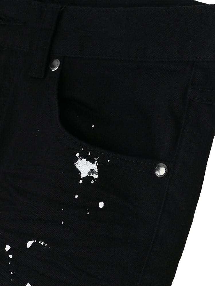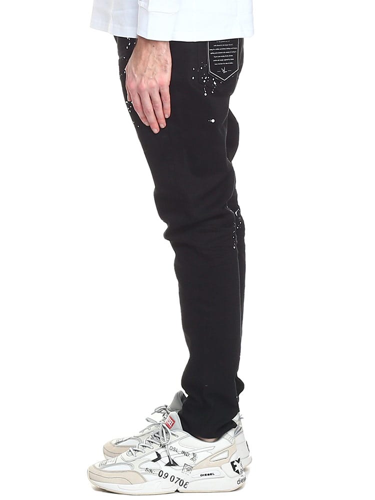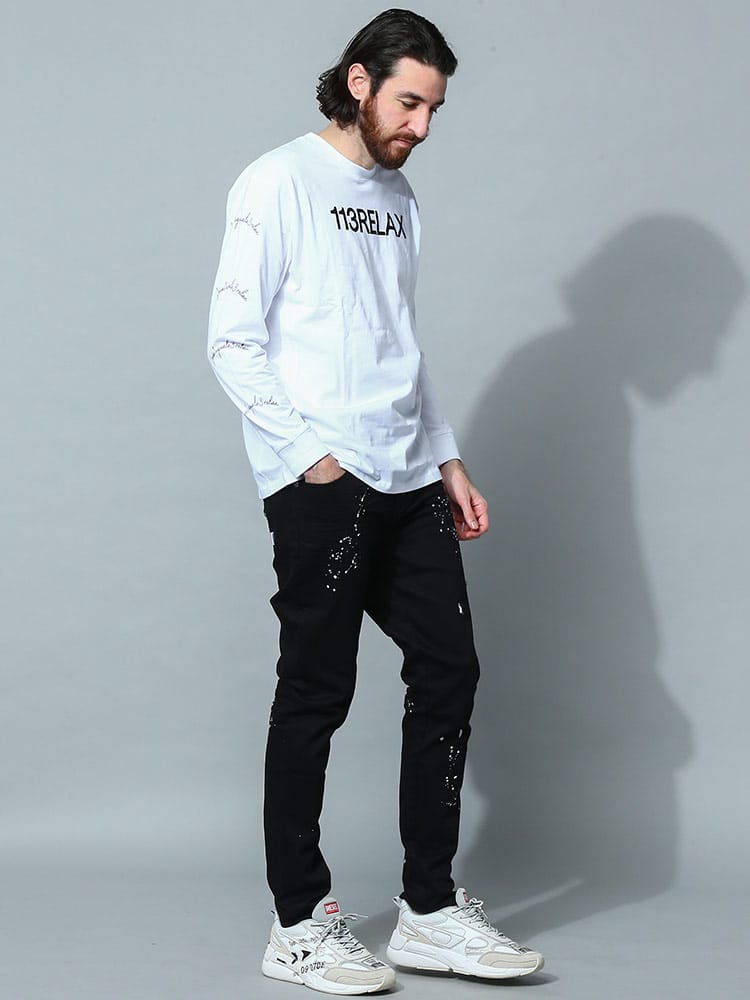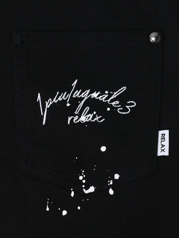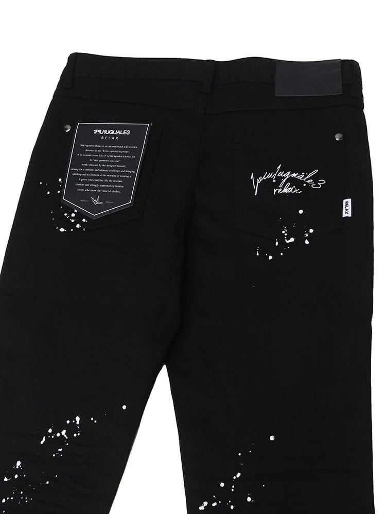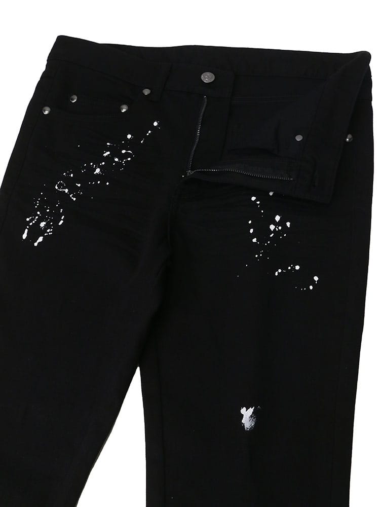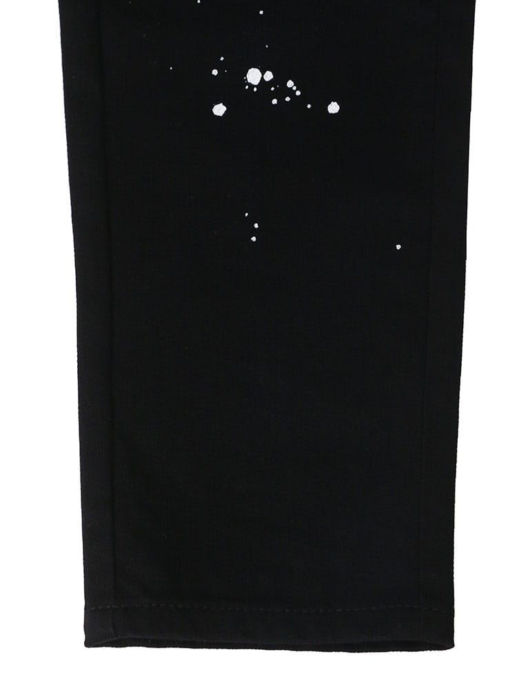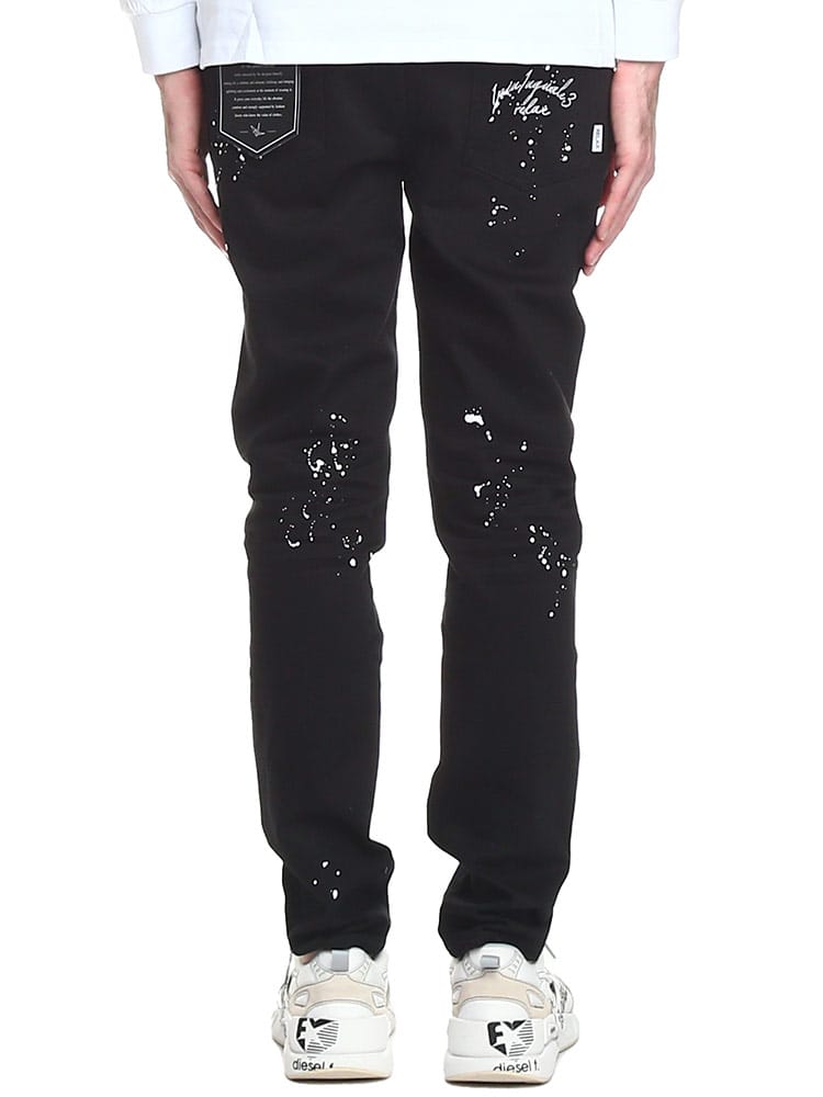 ペイントをランダムに施し、バックポケットにワンポイントで刺繍のロゴをデザインしたデニムパンツ。洗練されたシルエットは穿いて納得の仕上がり。スリムな着こなしもトップスにオーバーサイズでメリハリのある着こなしにもおすすめな一本です。