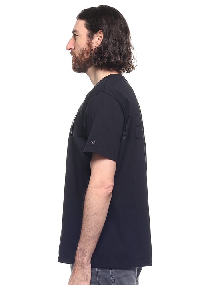 フロントからバックにかけてプリントされたロゴは派手過ぎず、どんなコーディネートにも合わせやすいデザインです。