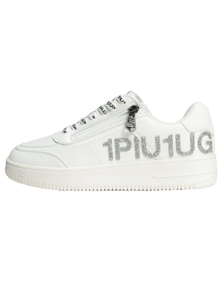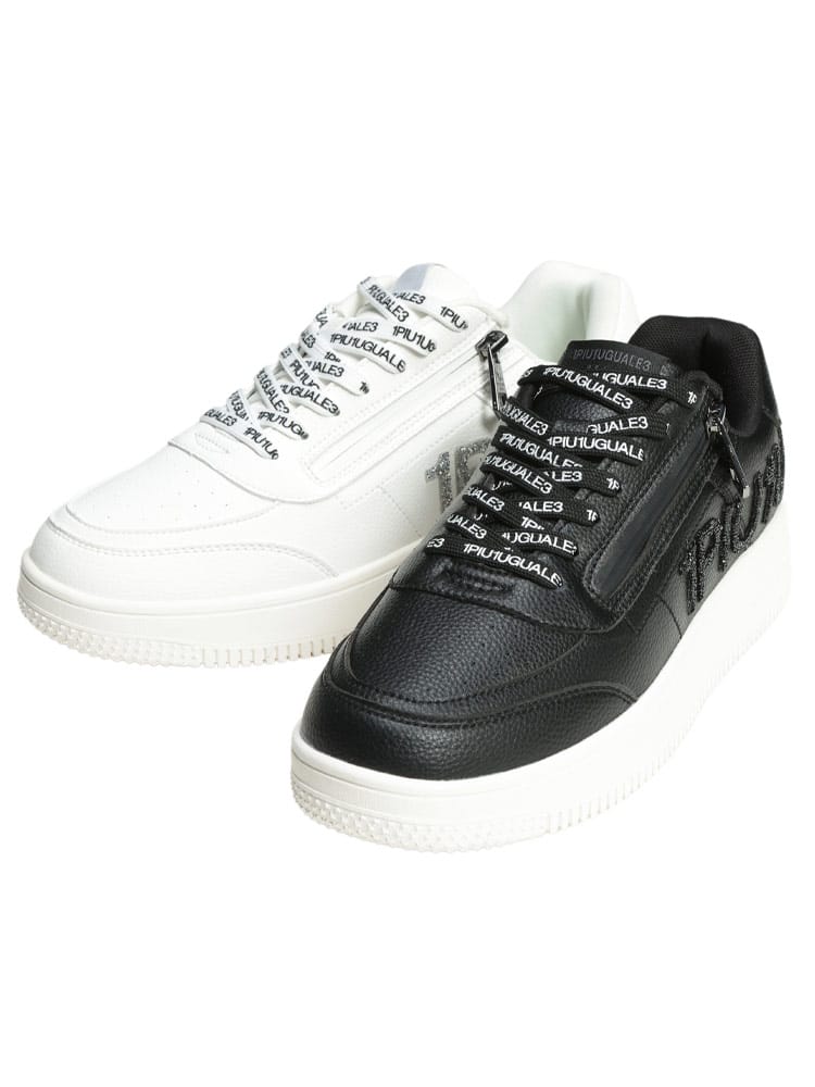 シーンを選ばず着用できるベーシックなシルエットのロゴスニーカー。サイドのロゴには細やかな光でより華やかさを纏う"スパークリングストーン"を採用。粒の小さなラインストーンをふんだんに使用し、他にはない輝きを演出しました。レースアップにジップをプラスすることで着脱の際の煩わしさを排除。カジュアルは勿論、キレイめスタイルのはずしとしても活躍すること間違いなしの一足です。ブランドロゴをプリントしたオリジナルのシューレースに加え、本体同色の無地シューレースも付属。