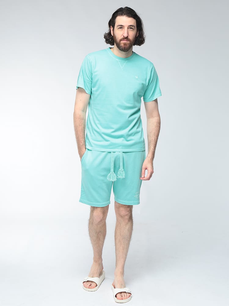 柔らかなスウェット生地を使用し、極上の穿き心地を追求したショートパンツです。ウエストはゴムとドローコードの仕様になっており、リラックスしたい休日やアクティブなシーンでもストレスなく着用できます。