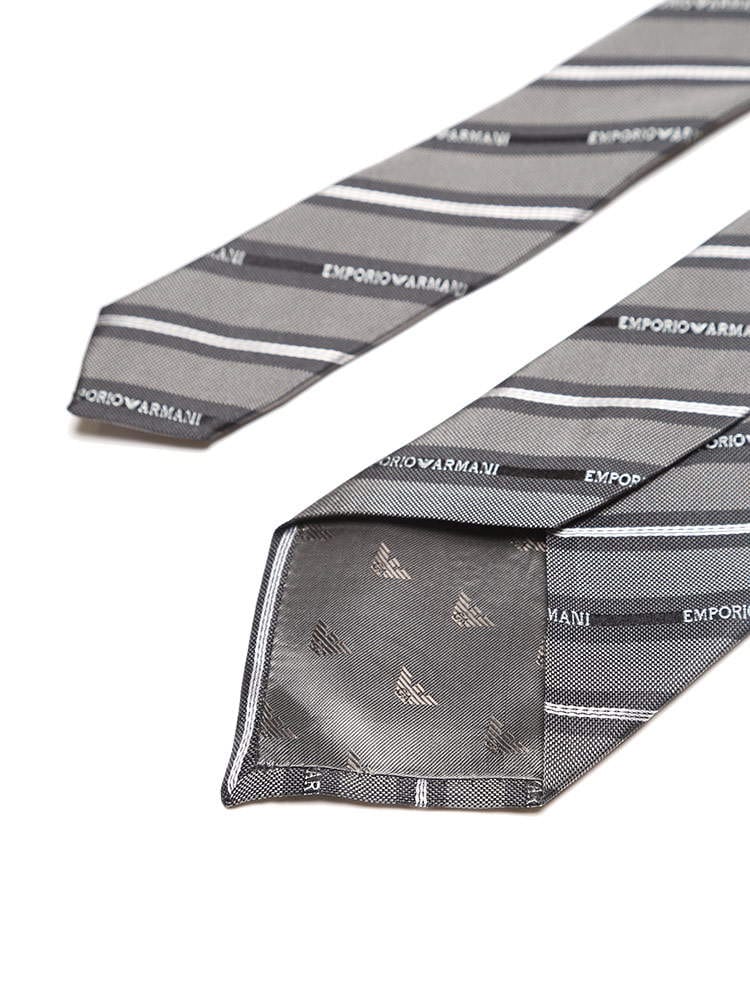 ・シルク100%で仕上げた品のあるロゴストライプ ネクタイ