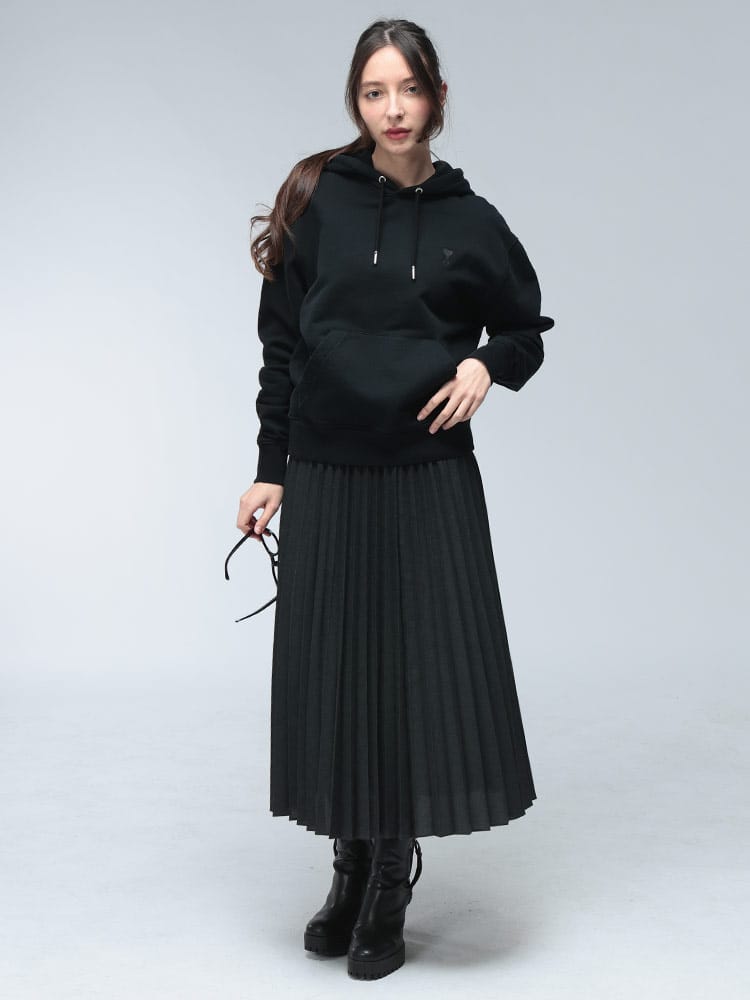 Ami de Coeur パーカーは、ブランドを象徴するハートとAのモチーフ(Ami de Coeur)を配したアイコニックな一着です。上質な素材を使用したクルーネックのスウェットシャツで、カジュアルながらも洗練されたフレンチシックな雰囲気を演出します。デイリーユースに最適な、タイムレスな人気アイテムです。