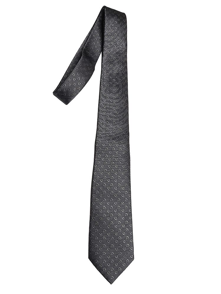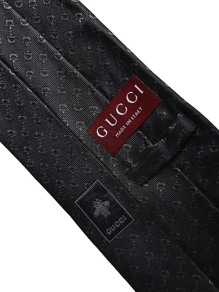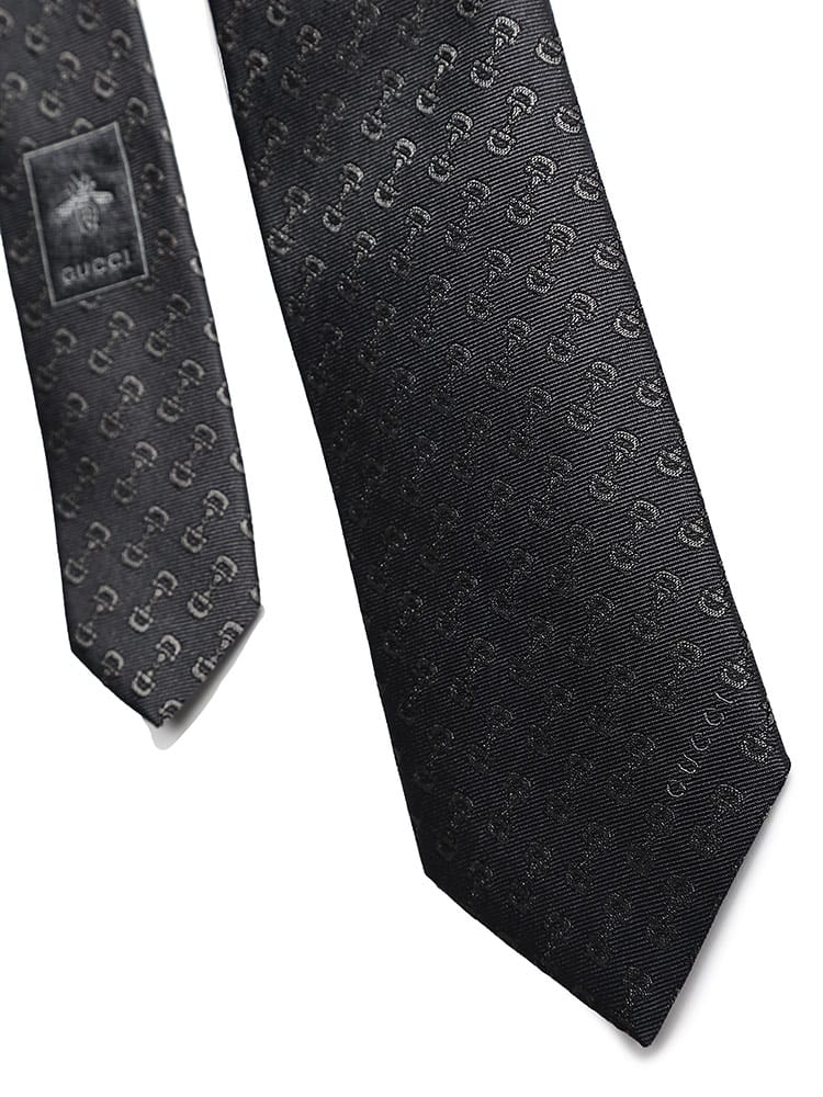 グッチのアイコニックなホースビットモチーフが印象的な、上質なシルク100%のネクタイです。光沢のあるシルク生地が上品な印象を与え、総柄のデザインが華やかさをプラス。ビジネスシーンはもちろん、フォーマルな場にも最適です。ギフトとしても喜ばれる、洗練されたアイテムです。