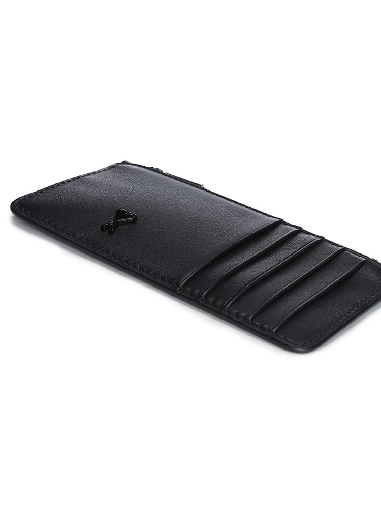 端正な佇まいと機能性を両立させた、AMI PARISの「Ami De Coeur ジップ カードホルダー」。しなやかなブラックのスムースレザーに、ブランドの象徴である「Ami De Coeur」のハートロゴがさりげなくあしらわれています。複数のカードスロットとジップ付きの小銭入れを備え、キャッシュレス時代に最適なミニマルな設計。どんなスタイルにも馴染み、手にするたびにリュクスな気分を味わえる、大人のための逸品です。