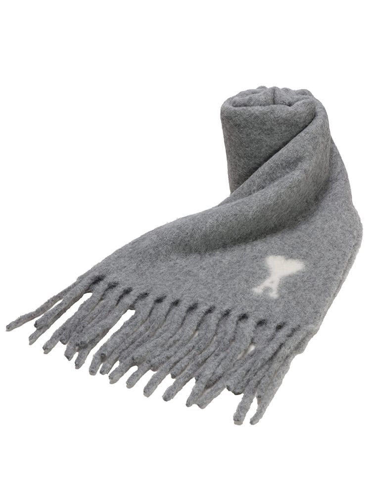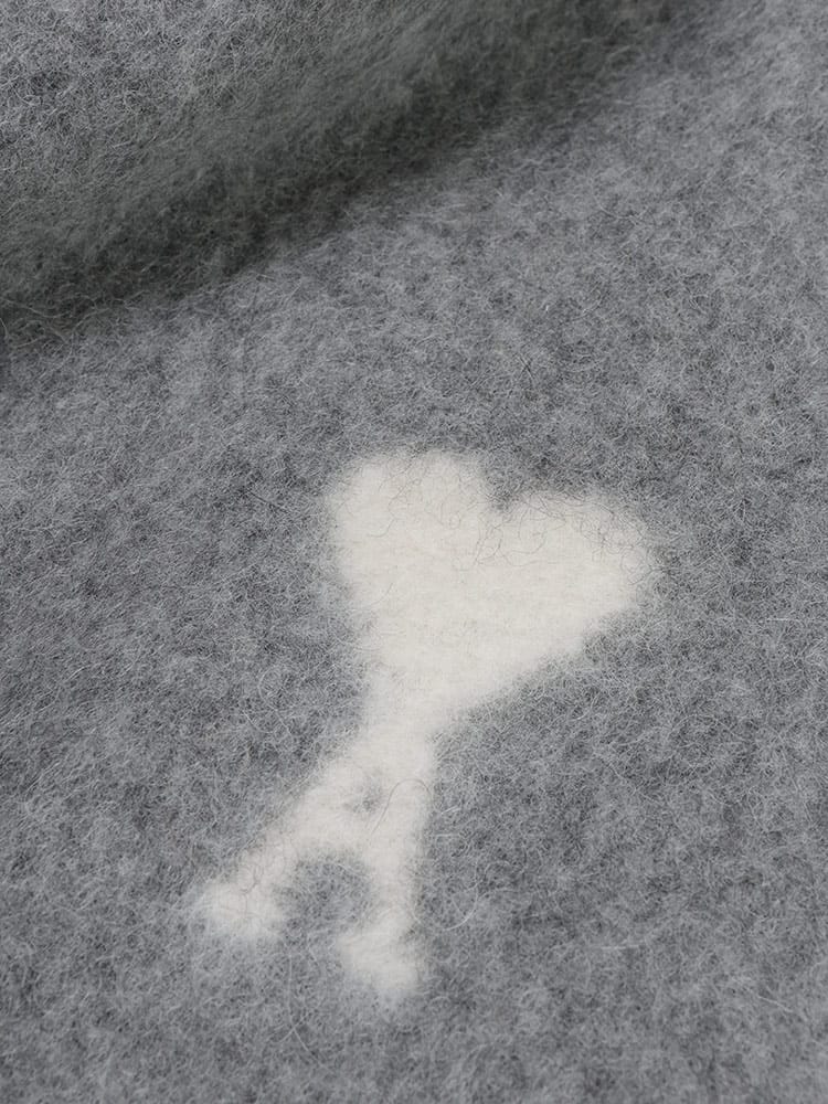 ふんわりと柔らかなアルパカ混のオーバーサイズスカーフ。アイコニックな「Ami De Coeur」ロゴが目を惹くデザインで、コーディネートのアクセントにぴったり。首元を暖かく包み込み、寒い季節に活躍します。男女問わず使えるアイテムです。