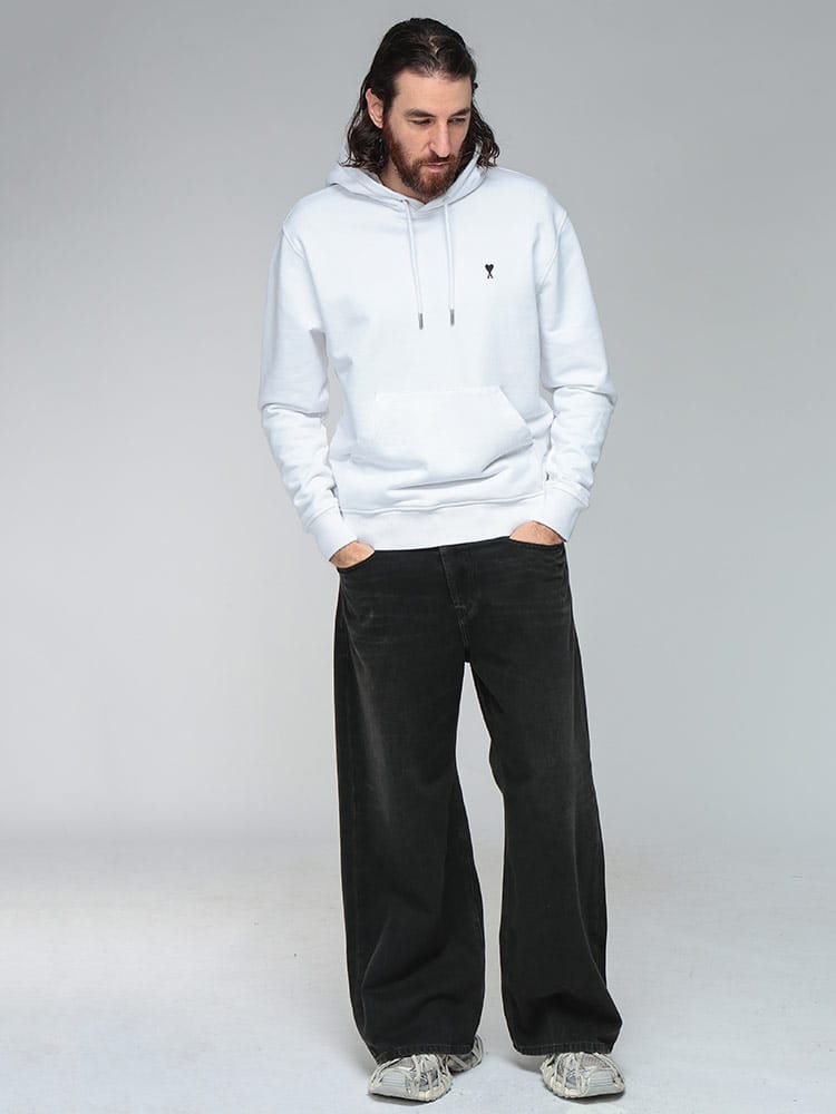 AMI PARISの定番「Ami de Coeur」モチーフが胸元に映えるプルオーバーパーカーです。上質なループバックコットンフリース素材を使用し、柔らかな着心地と軽やかな裏地が魅力。シンプルなデザインながらも、コントラストカラーのハートロゴ刺繍が洗練されたカジュアルスタイルを演出します。