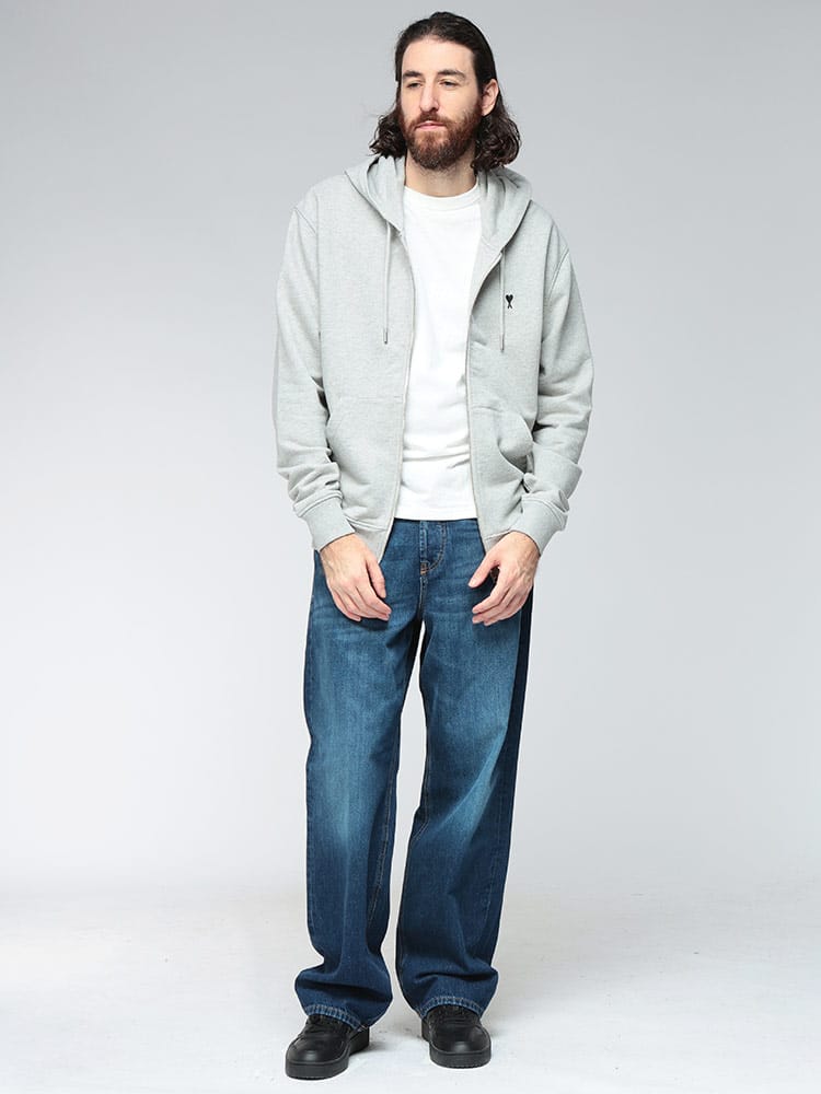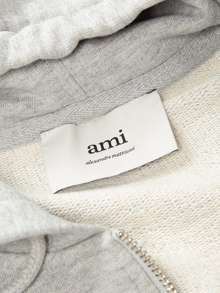 AMI PARISの「Ami de Coeur」ジップパーカーは、ブランドのシグネチャーであるハートモチーフの刺繍が胸元に施されたユニセックスモデルです。柔らかなループバックコットンフリース素材を採用し、リラックス感のあるクラシックフィットが特徴。フルジップ仕様で着脱しやすく、カジュアルながらも洗練された雰囲気を纏う一着。幅広いコーディネートに活躍する、デイリーウェアの定番です。