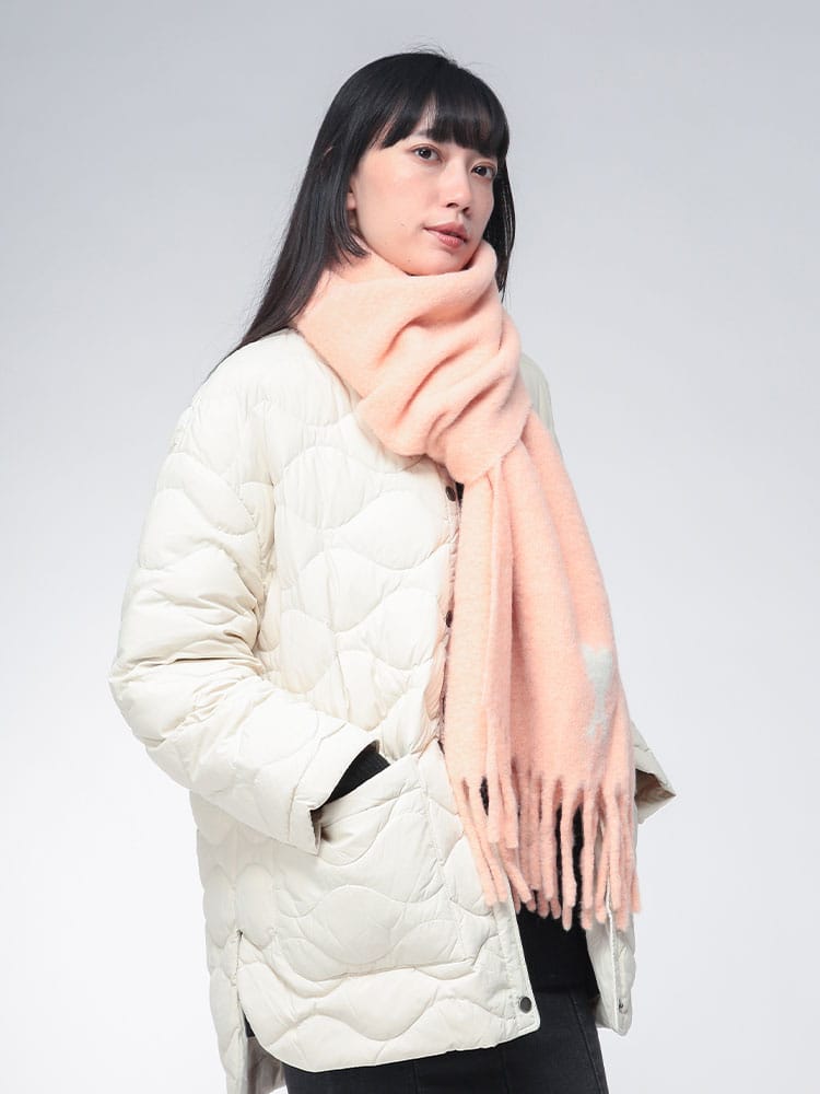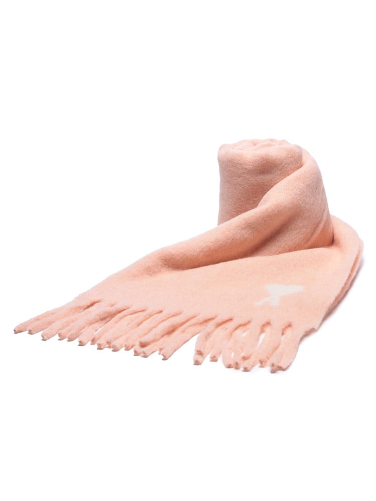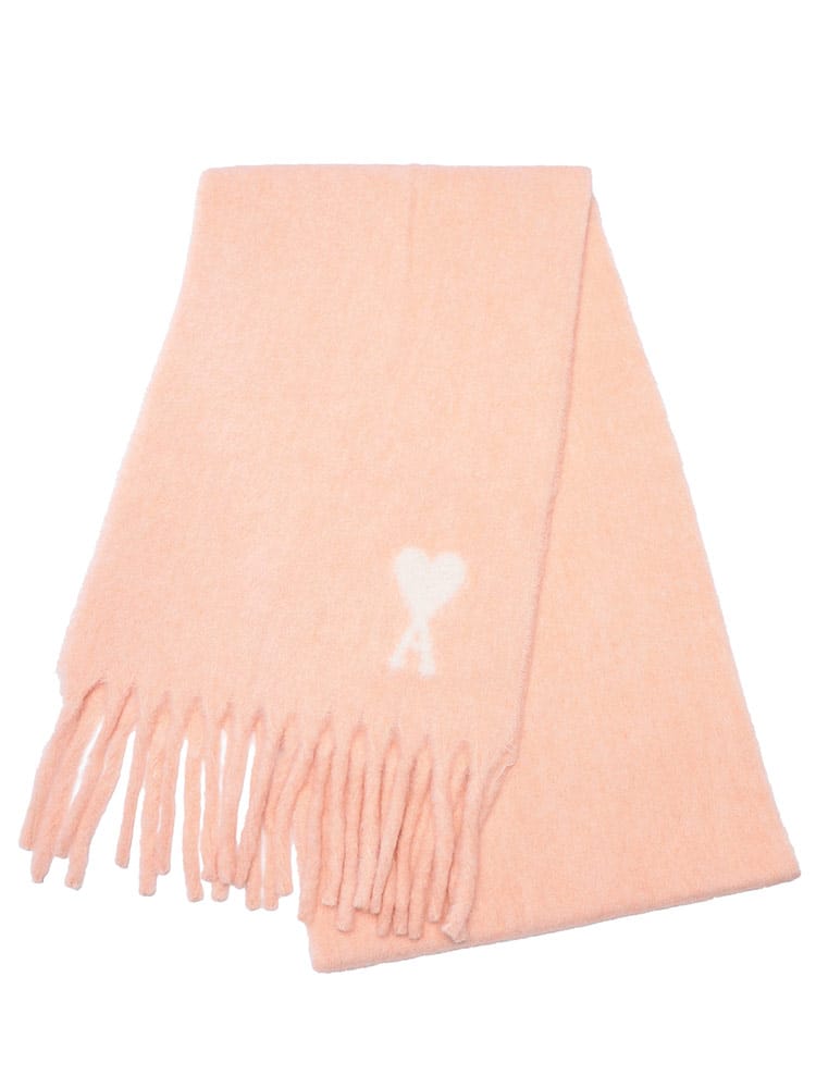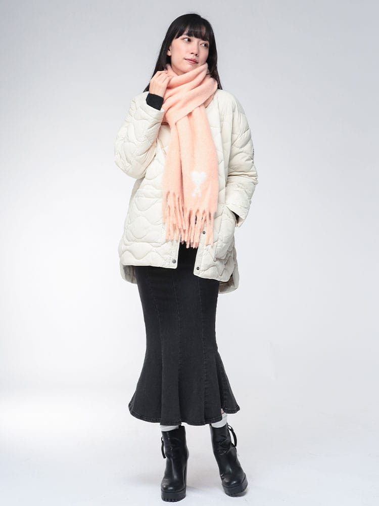 「AMI De Coeur」アルパカマフラーは、アルパカ、ナイロンなどをブレンドしたふんわりと柔らかなオーバーサイズスカーフです。抜群の保温性と優しい肌触りで首元を暖かく包み込みます。ブランドの象徴である「Ami de Coeur」ロゴがジャカード織りでデザインされ、寒い季節のコーディネートにフレンチシックなアクセントを添えるユニセックスアイテムです。