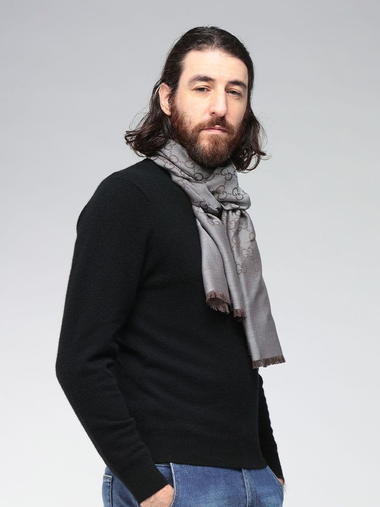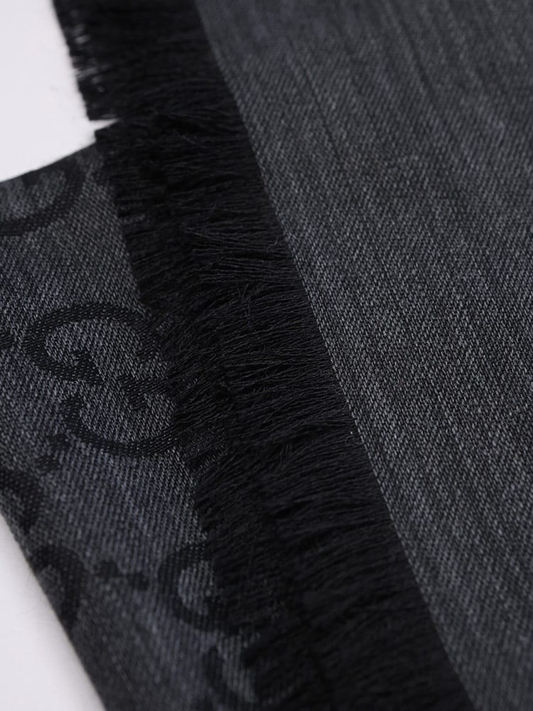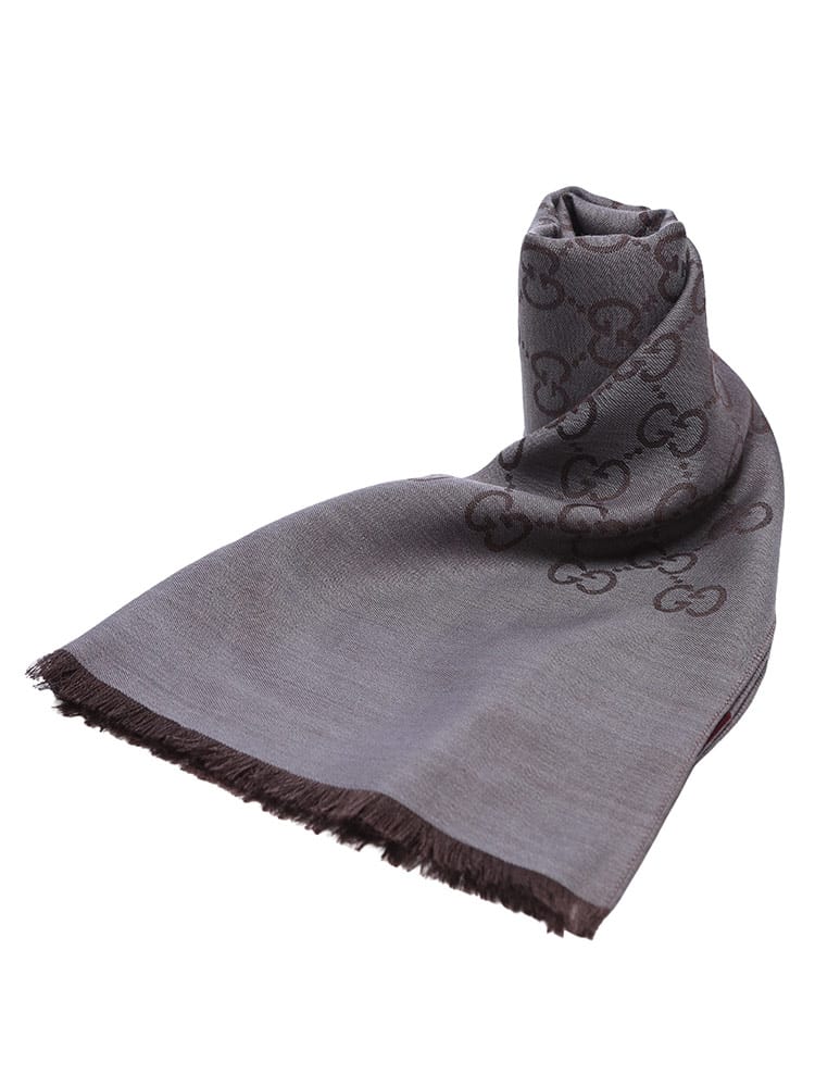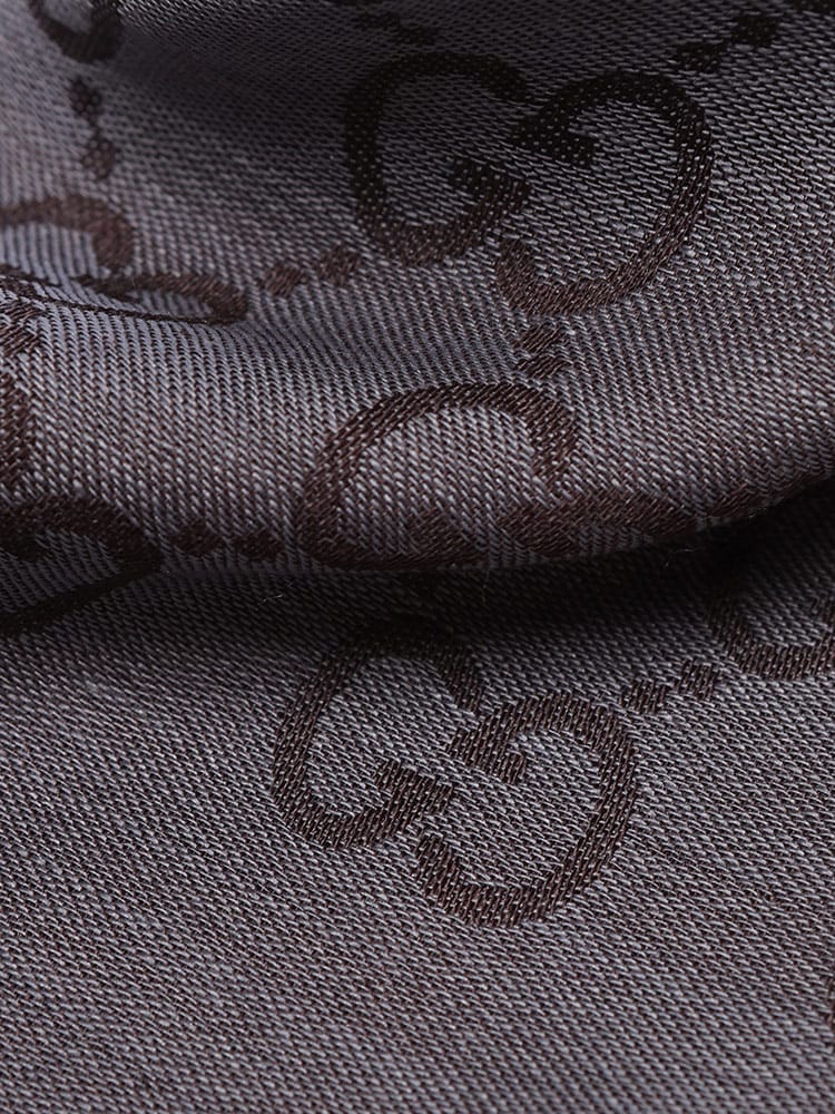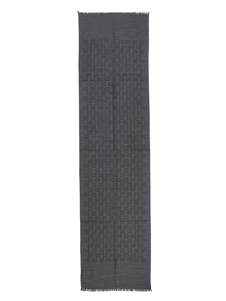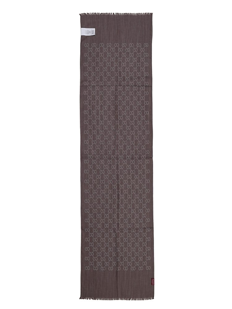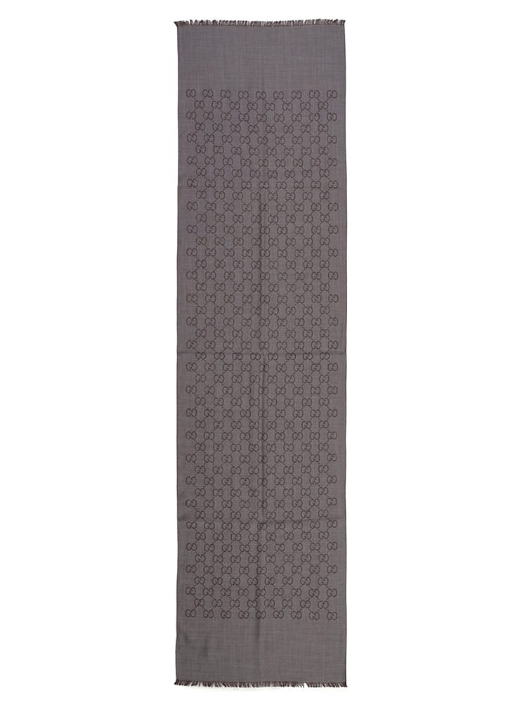 象徴的なGGロゴが織り込まれた、シルク混の薄手ショールです。ウールとシルクをブレンドした素材は、上品な光沢感と滑らかな肌触り、そして程よい保温性を兼ね備えています。約45cm幅の大判サイズで、肩にかけたり首に巻いたりと多様なアレンジが可能。エレガントな総ロゴデザインが、普段の装いを格上げするラグジュアリーなアイテムです。