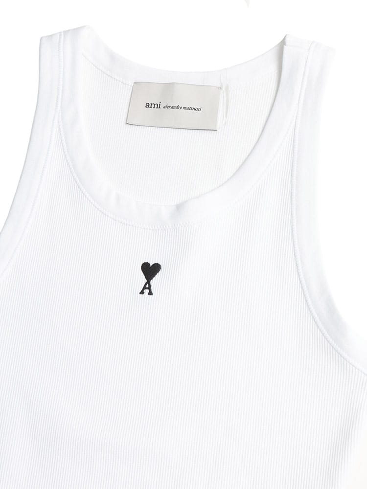 胸元にさりげなくあしらわれた「Ami de Coeur」の刺繍が、ミニマルなデザインに温かな遊び心を添えるタンクトップです。ボディに心地よくフィットする上質なコットン素材を採用し、シンプルながらも計算されたカッティングがヘルシーで都会的なシルエットを描き出します。一枚で着てもサマになる存在感があり、シャツやジャケットのインナーとして覗かせれば、アイコニックな赤のハートロゴが洗練されたアクセントに。