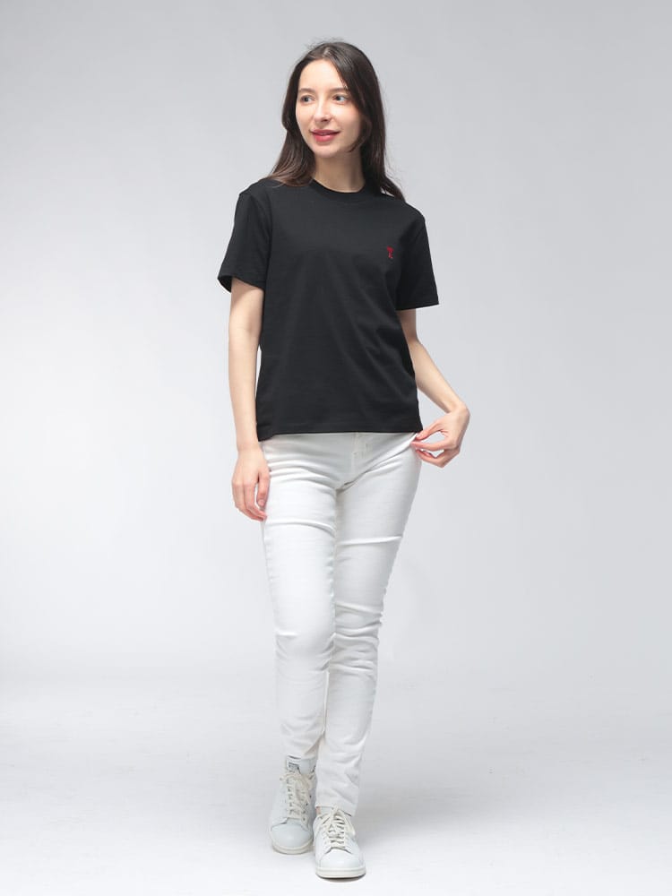 パリの躍動感と親密さを象徴するAMI PARISより、ブランドの顔である「Ami de Coeur」の刺繍が胸元を彩る半袖クルーネックTシャツです。デザイナーのアレクサンドル・マテュッシが友人へ送る手紙に用いたサインから着想を得たレッドハートのロゴは、シンプルながらも一目でそれと分かる圧倒的な存在感を放ちます。時代に左右されないクラシックフィットのシルエットは、体に馴染む絶妙なサイズ感で、カジュアルからクリーンなジャケパンスタイルまで幅広い着こなしに対応。厳選されたコットンがもたらす柔らかな肌触りは、一度袖を通せば手放せなくなる快適さです。日常をフレンチシックに彩る、ワードローブに欠かせない永遠の定番です。