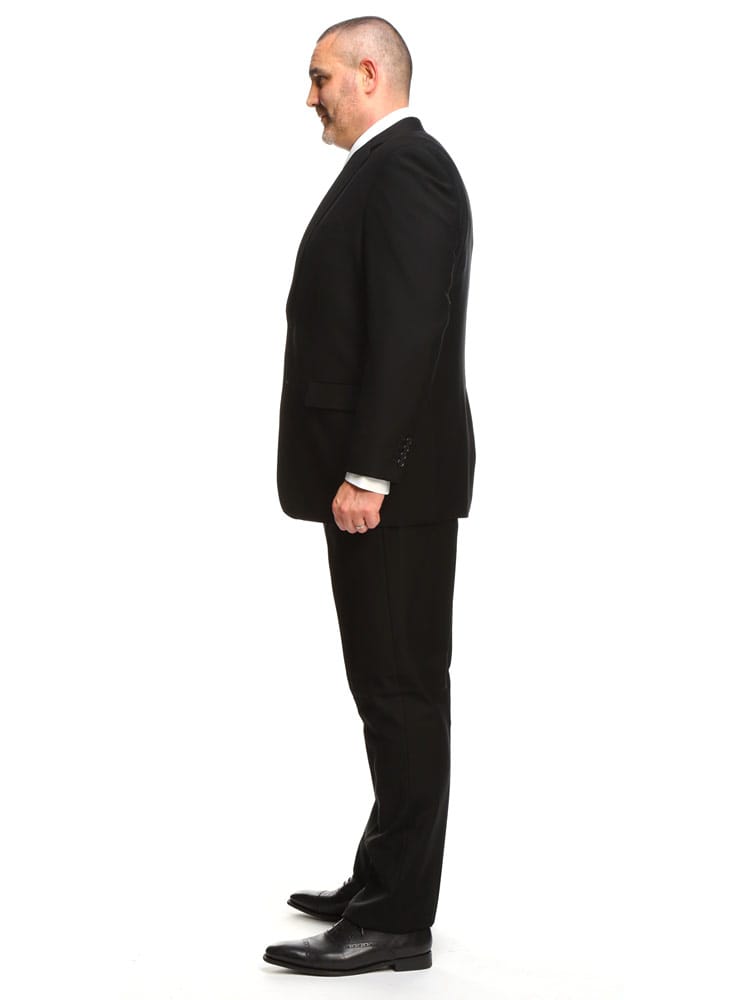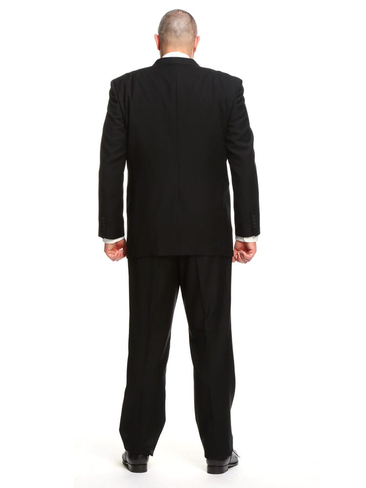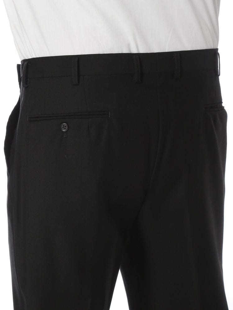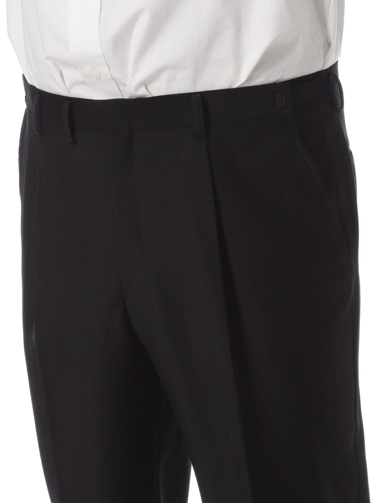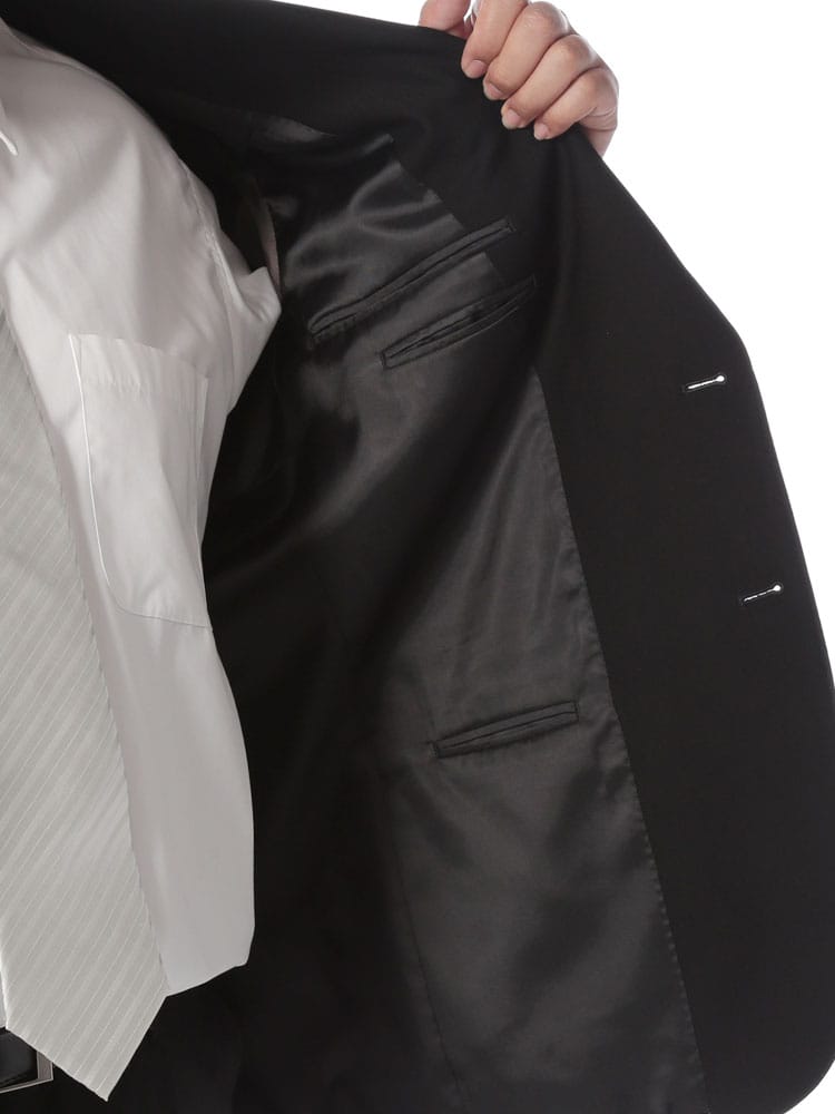 インターブラック シングル 2ツ釦 フォーマルスーツです。パンツは両サイドアジャスターにて調整可能、濃染加工によるしっかりしたブラック、携帯電話・メガネ・祝儀袋ポケット、オールシーズンタイプの多機能礼服となっております。