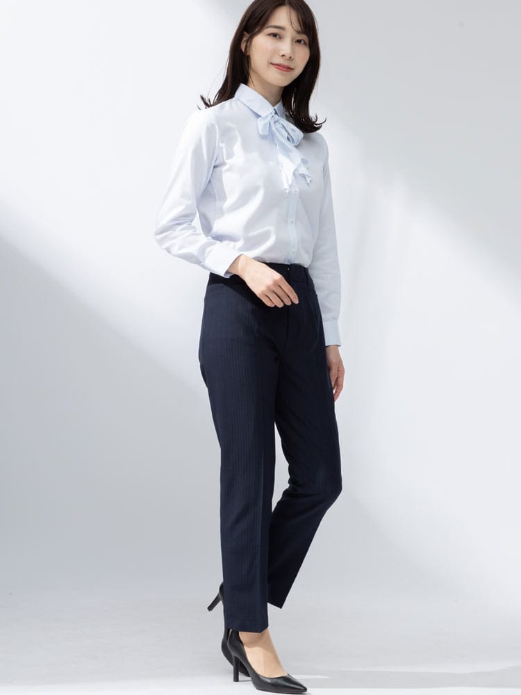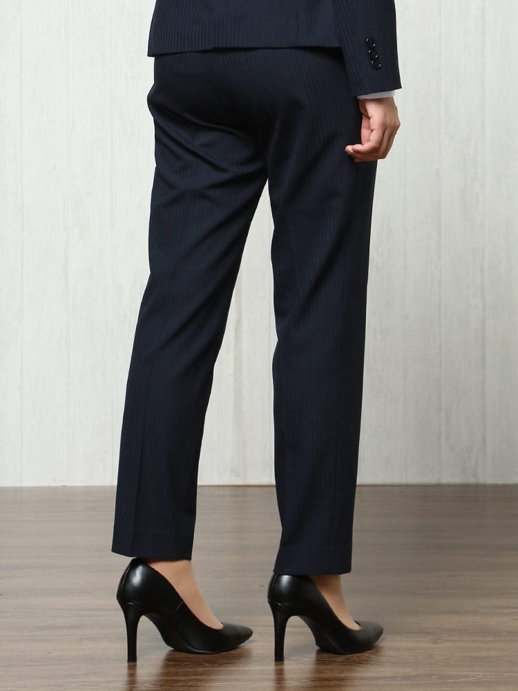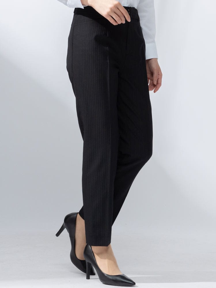 すごいらくなストレッチが効いたストライプ タック パンツです。伸縮性に優れた素材を使用し動きやすく、型くずれの心配も少なくてすみます。タック入りでゆとりのあるデザイン。洗練された印象のストライプデザインでフォーマルシーンに着ていただけます。