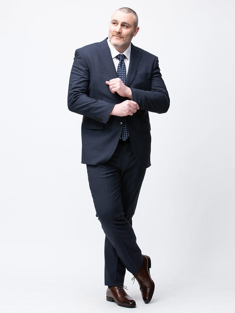 落ち着きのあるデザインのシングルスーツです。ボトムスにはアミノ酸を利用した折り目が消えにくい加工が施されています。長時間の着用や、雨や水に濡れた時でも折り目が消えにくくなっています。着用後に折り目が消えかかっても、霧吹きして、吊り下げておくと折り目が回復していきます。パンツは毎日着るビジネスマンには嬉しい2パンツ。デザインだけでなく機能性もあるスーツです。