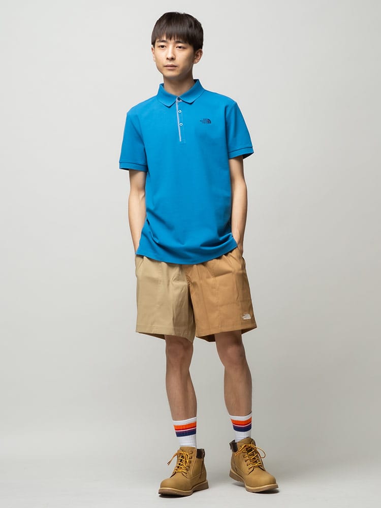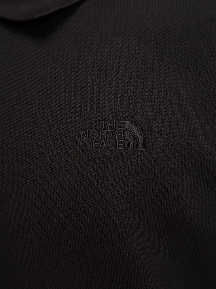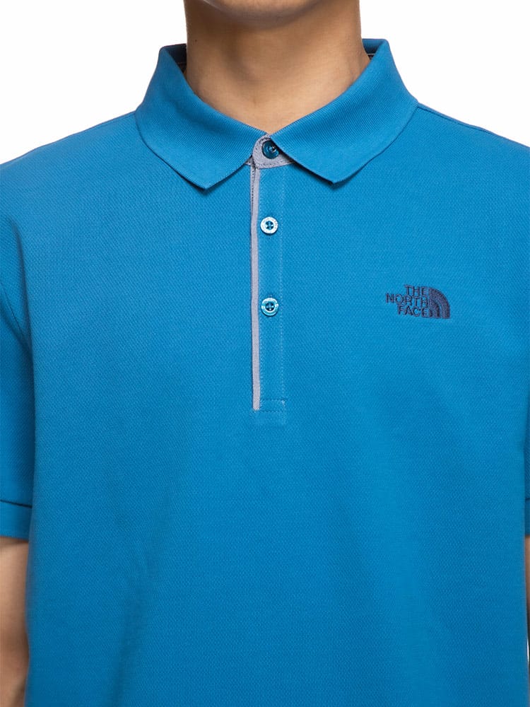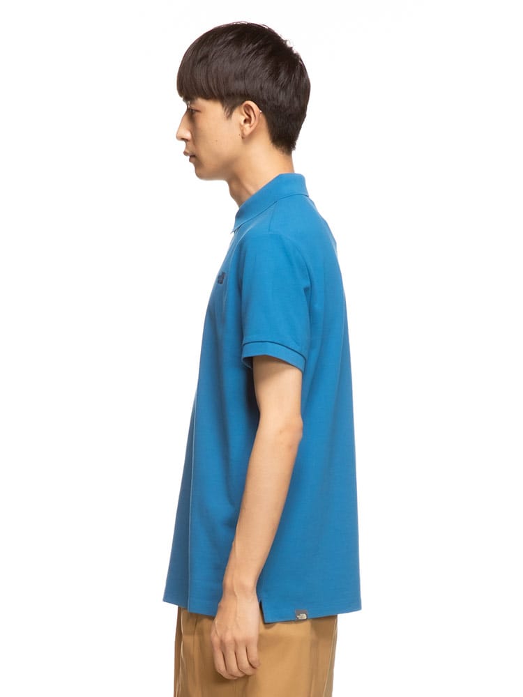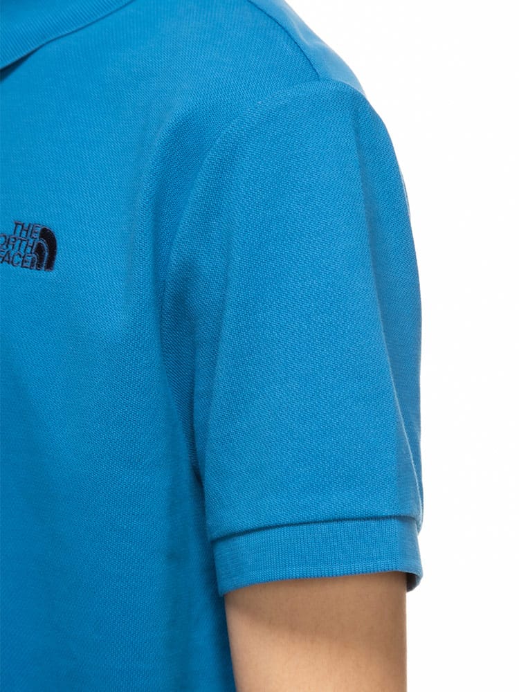 コントラストカラーの衿デザインがポイントになったTHE NORTH FACEの胸ロゴ刺繍 半袖 ポロシャツ PREMIUM POLO PIQUET。左胸にロゴ刺繍。前立て部分と衿裏のコントラストカラーがアクセントをプラスしています。バック左裾にブランドタグ付き。裾サイドに動きやすいスリット入り。肌触りの良いコットン生地を使用し、着心地抜群の一枚です。
