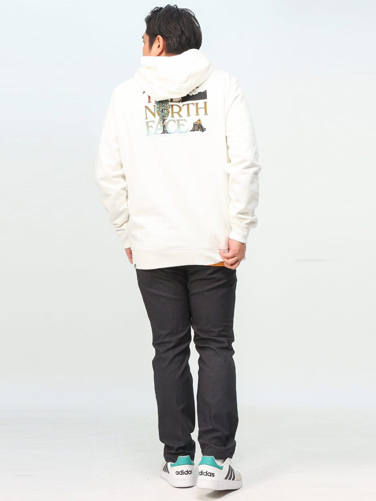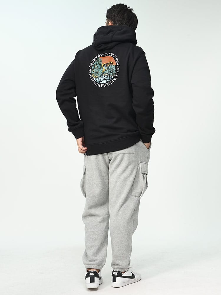 ザ ノースフェイスの裏起毛プルオーバーパーカーは、寒い季節に最適な暖かい裏起毛素材を採用しています。特徴的なのは、背面に大きく施されたグラフィックプリント。このバックプリントはスタイリッシュで存在感があり、ブランドのアイデンティティを際立たせます。フード付きのデザインで、都市のストリートシーンからアウトドアまで幅広く対応。