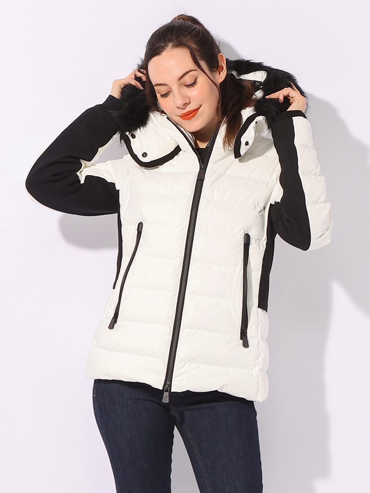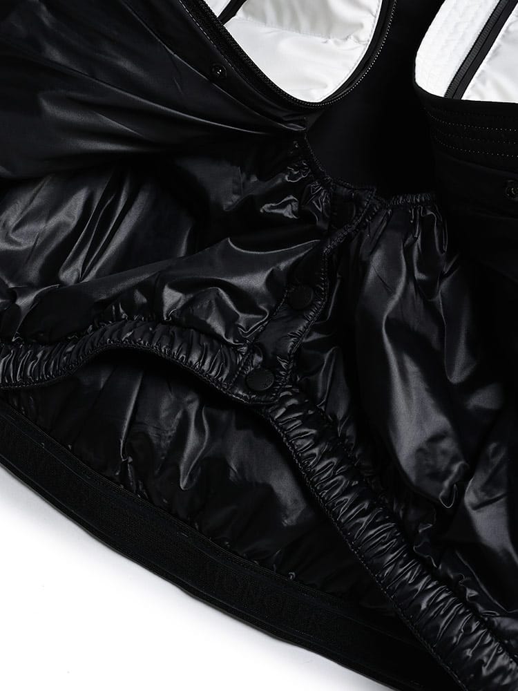 素材 :[本体]ナイロン86% ポリウレタン14% [裏地1]ナイロン100% [裏地2]ナイロン95% ポリウレタン5% [袖裏]ポリエステル92% ポリウレタン8% [別布]ポリエステル52% ナイロン32% ポリウレタン16% [別布1]モダクリル93% ポリエステル7% [別布2]ナイロン83% ポリウレタン17% [詰物]ダウン90% フェザー10% [その他詰物]ポリエステル100%