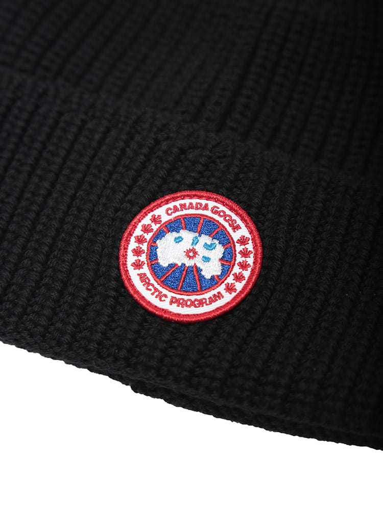 極上の暖かさを誇るカナダグースのニットキャップ。100%メリノウールを使用し、イタリアで丁寧に作られています。柔らかく、保温性に優れ、肌触りも抜群です。折り返し部分にはブランドの象徴的なロゴが刺繍されており、デザイン性も◎。寒い冬も快適に過ごせる、高品質な一品です。