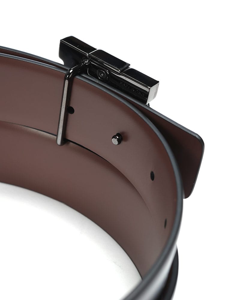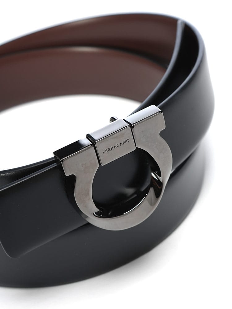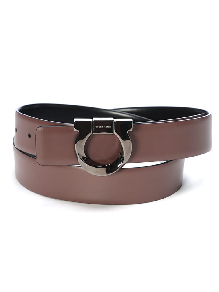 リバーシブル ガンチーニバックル ベルトは、ブランドのアイコンガンチーニが輝くエレガントな一本です。表裏で色違いのレザーを使用しており、一つのベルトで二通りのスタイルを楽しめる汎用性が魅力。