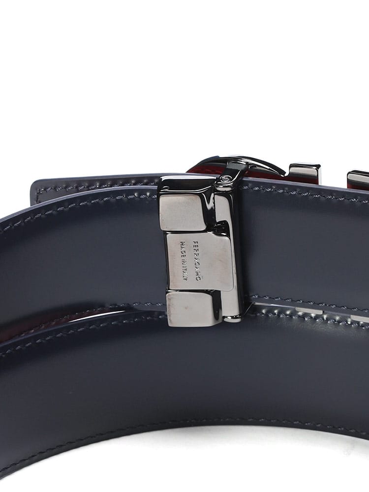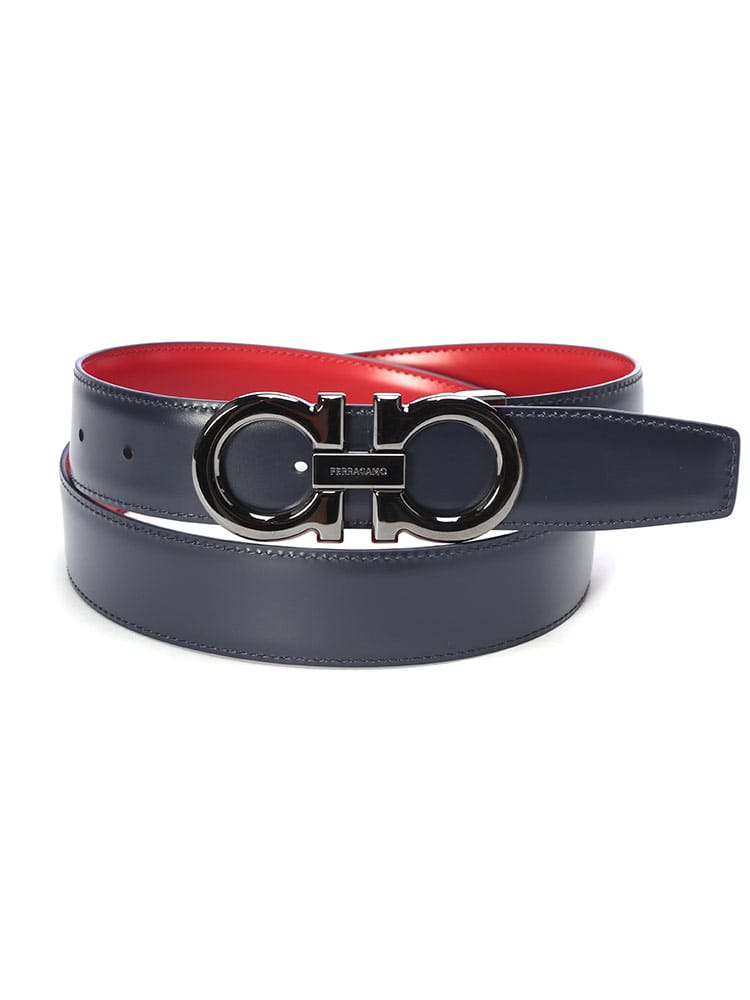 リバーシブル ガンチーニバックル ベルトは、ブランドのアイコンガンチーニが輝くエレガントな一本です。表裏で色違いのレザーを使用しており、一つのベルトで二通りのスタイルを楽しめる汎用性が魅力。