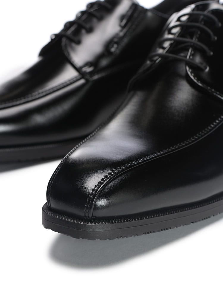 TAKEZO for menの「SLIP-EASY」は、忙しいあなたにぴったりのビジネスシューズです。かがむことなく、靴べらも不要で、立ったままスムーズに履けるのが魅力。特殊な形状のかかとが型崩れを防ぎ、いつでもスマートな印象をキープします。快適な履き心地に加え、抗菌防臭機能も搭載。手を使わずに履ける便利さと、ビジネスシーンにふさわしいスタイリッシュさを両立した一足です。