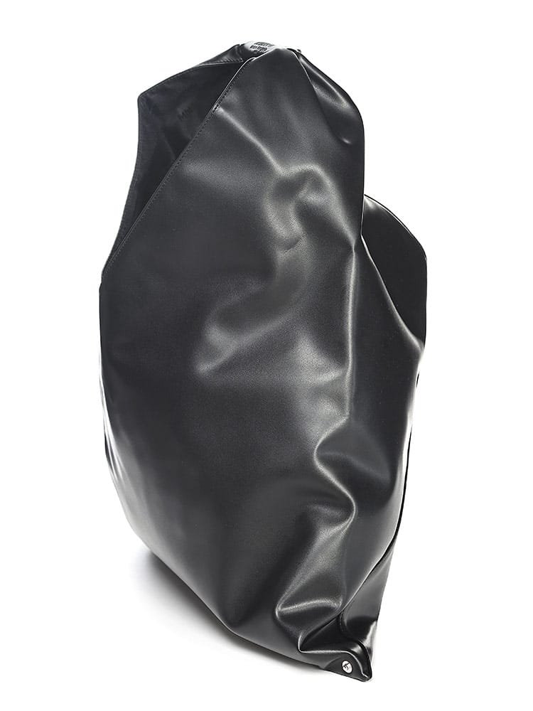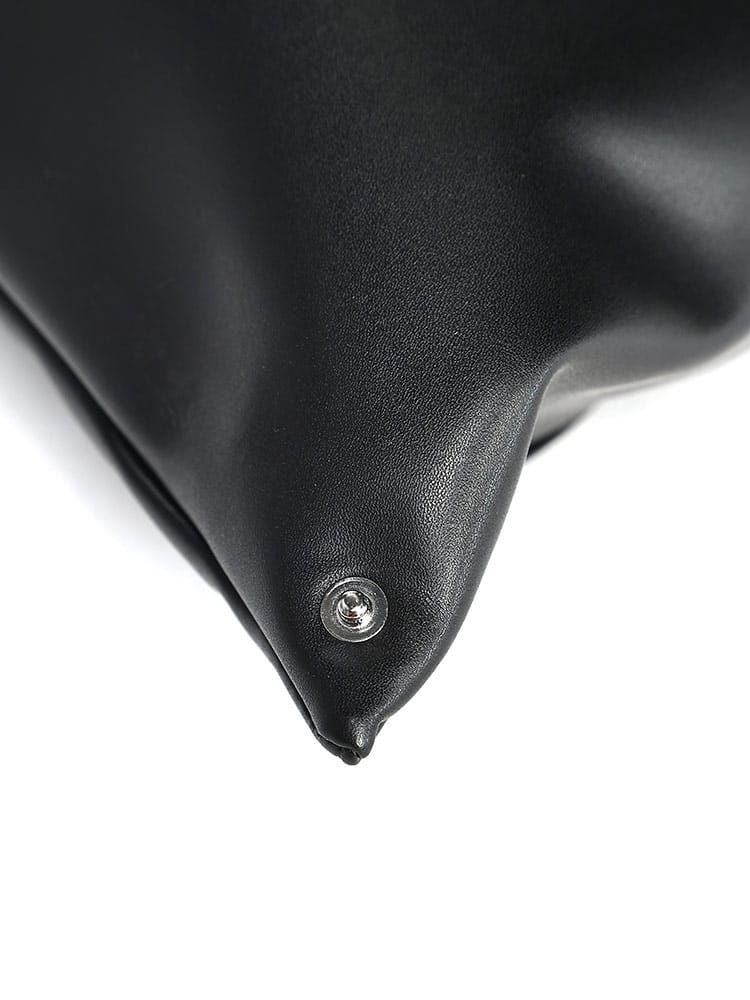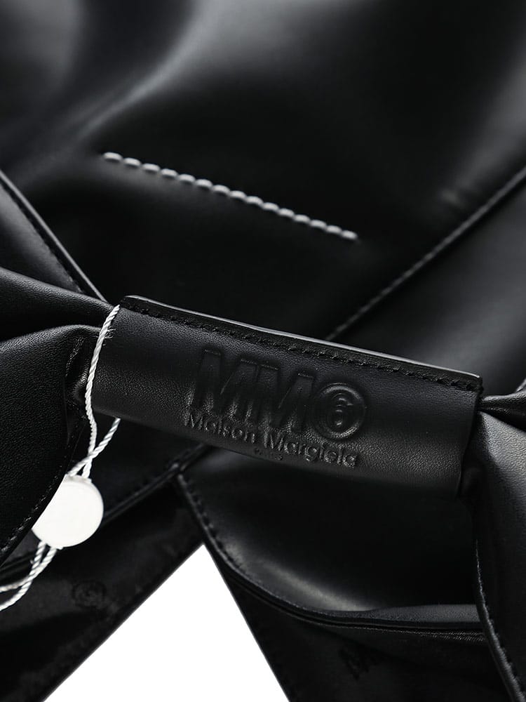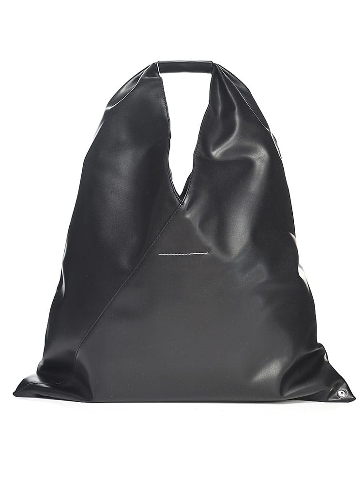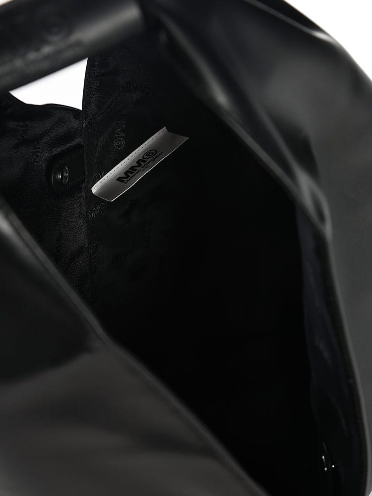 PUレザーを使用した「ジャパニーズ」バッグ クラシック ミディアム。2009年秋冬コレクションで初めて発表された「ジャパニーズ」バッグは、その後MM6を象徴するアクセサリーとなりました。特徴的な三角形のシルエットは、日本の折り紙からインスパイアされたもの。バッグの縁にあしらわれたボタンを使うと、バッグを折って形を変えることができ、メゾンの「デコンストラクション」(脱構築的)なデザインコードが反映されています。毎シーズン、「ジャパニーズ」バッグはサイズと革新的なファブリックで再デザインされ、タイムレスなアクセサリーに生まれ変わります。