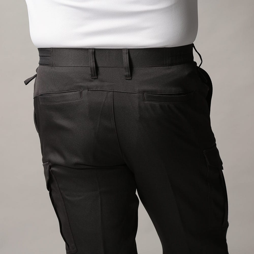 仕様 :外側ポケット数×6つ / ジップフライ / ウエスト調節ゴム / 制電素材 / 消臭テープ / キーホルダーループ