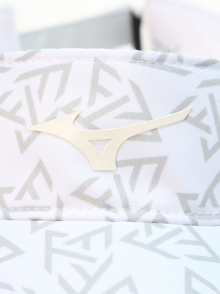 MIZUNOのメッシュクールホールドロゴバイザーです。バイザー内側のビン皮部分を水に濡らすことで涼感が得られます。真夏のゴルフを快適に!