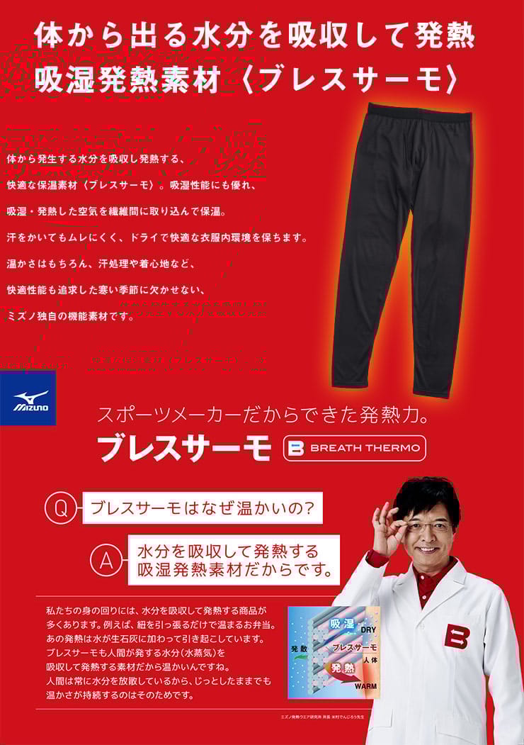 素材 :[本体]ポリエステル87% 合成繊維(ブレスサーモ)13% [ウエストゴム]ポリエステル100%