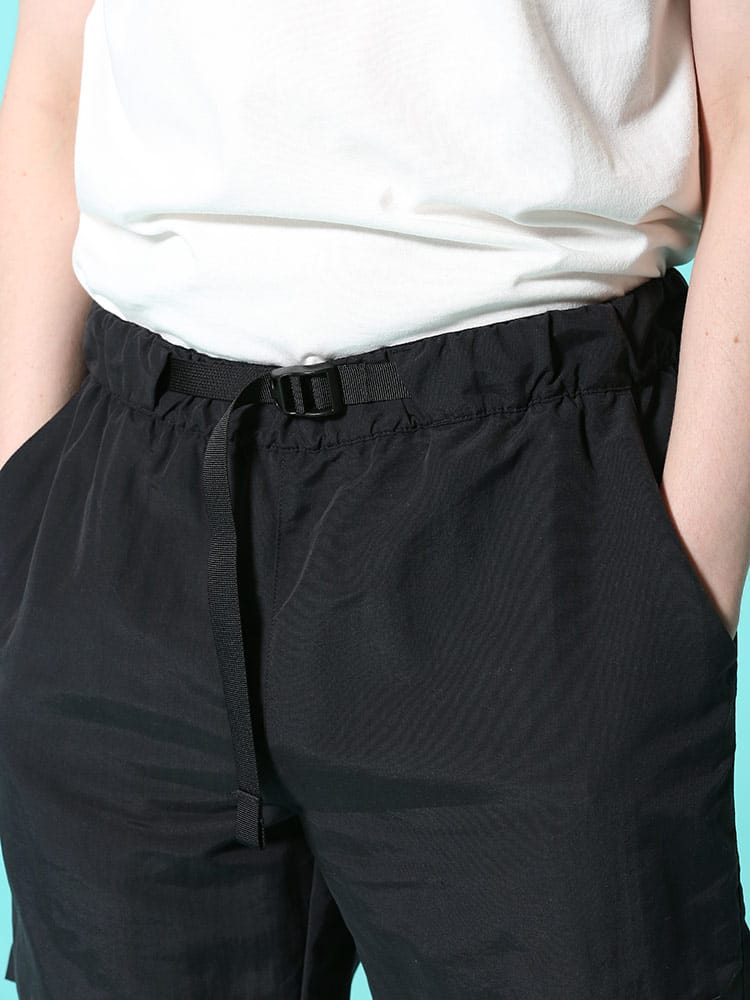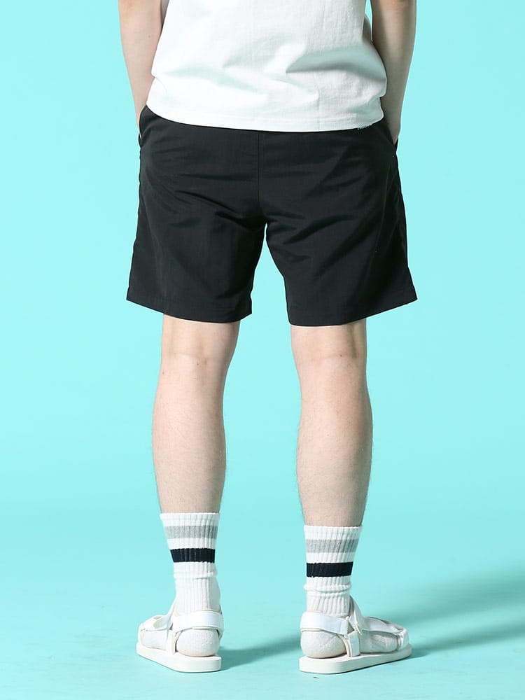 左足のロゴがポイントになったウエストコード ショートパンツ FlashDry Black Box Short Short。バック右ポケットにロゴ刺繍。ポケットの内側はメッシュ地になっており、通気性に優れています。ウエストにはベルト付きでサイズ調整が可能。アクティブシーンからタウンユースまで幅広く着ていただけます。