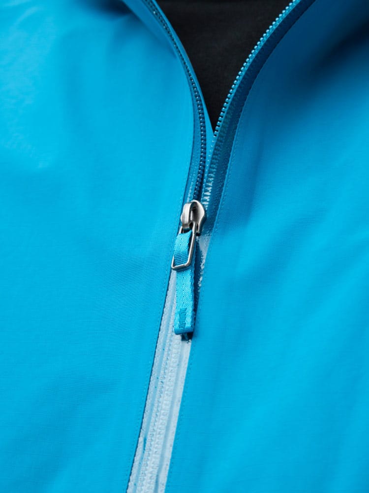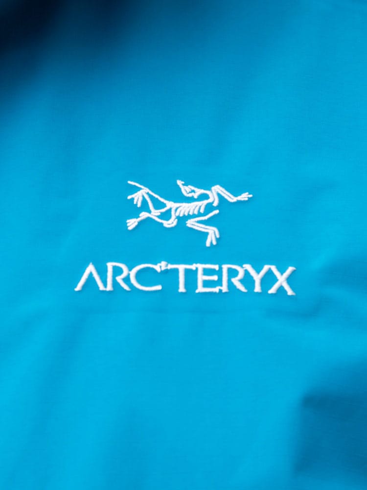 アウトドアにおすすめなARC'TERYXのゴアテックス 胸ロゴ刺繍 フード フルジップ ジャケット zeta sl jacket。ゴアテックスで防水、防風、軽量で快適な着心地です。左胸のロゴ刺繍がポイントです。裾にサイズ調整出来るドロコード付き。アウトドアにはもちろんタウンユースでもお使いいただける一着です。