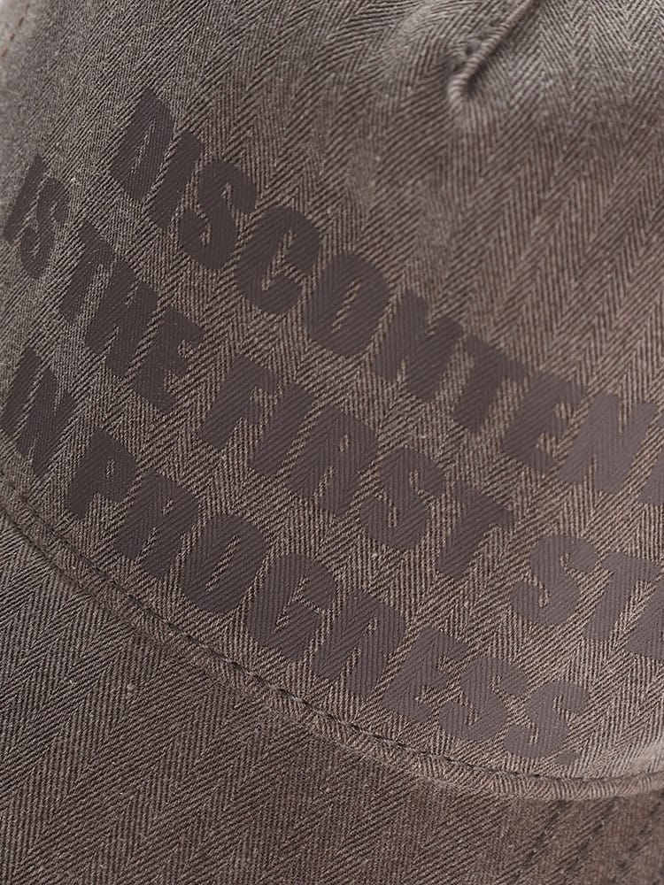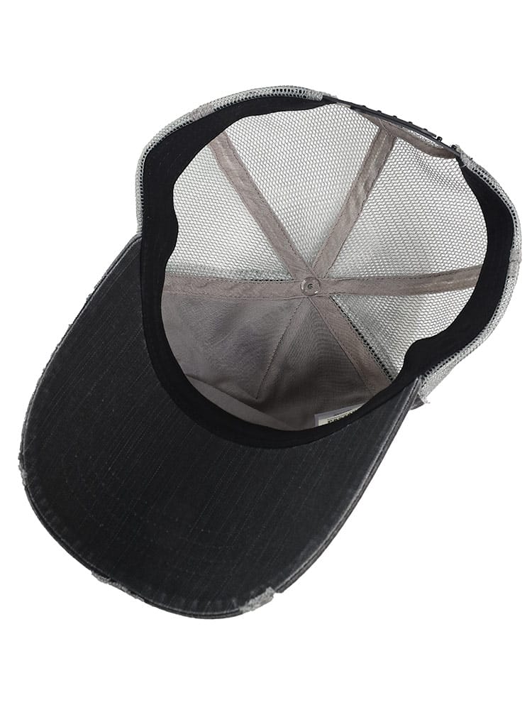 CASTANOのメッセージプリント メッシュ キャップ。ベーシックなハーフメッシュタイプのキャップです。ダメージ加工とフロントのメッセージプリントが、アクティブなカジュアルさを演出してくれるアイテム。
