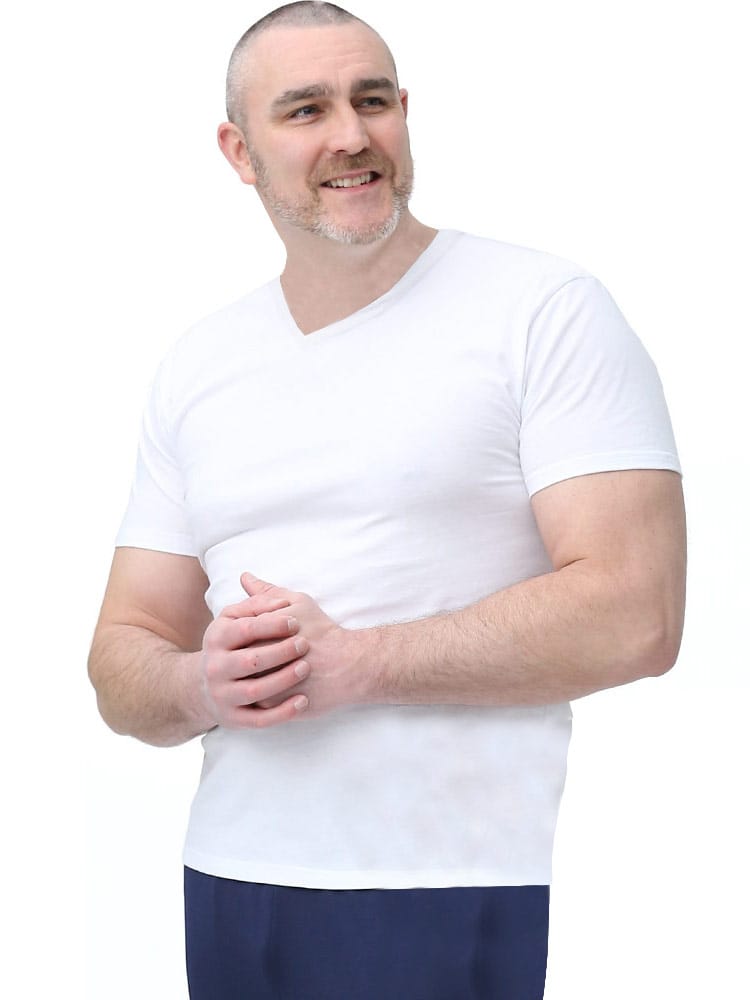 シンプルな無地のVネックの白Tシャツになります。Yシャツの下に着てもすっきりなVネックになります。毎日使うアンダーウェアーなのでまとめ買いでお得に。快適なビジネスライフをサポートします。プレゼントにもオススメです。