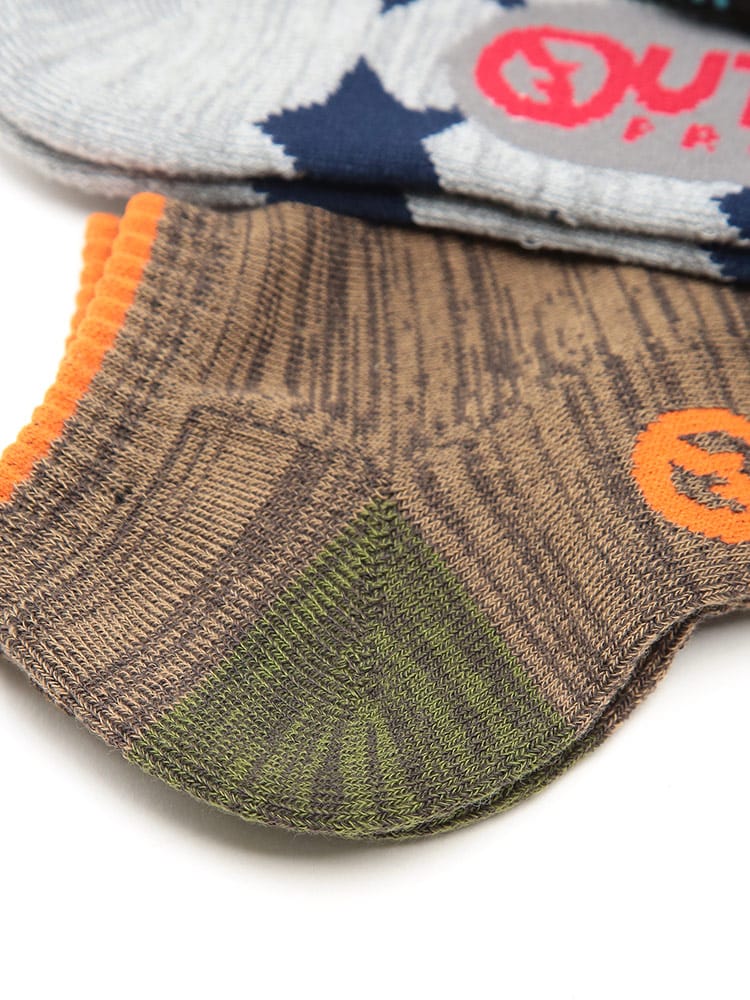 人気ブランドOUTDOOR PRODUCTS(アウトドアプロダクツ)から、大きいサイズのメンズ向けスニーカーソックス5足セットが登場。足底にはクッション性に優れた裏地パイルを採用し、歩行時の衝撃を吸収しながらソフトな履き心地を実現しました。伸縮性の高いポリエステル・ポリウレタン素材を使用しており、大きな足にも締め付け感なく快適にフィット。くるぶし丈のショート仕様で、スニーカーとの相性も抜群です。スポーツやアウトドア、デイリーユースまで幅広く活躍するアソート柄の5足組は、洗い替えにも便利な高コスパアイテム。オールシーズン対応のタフな作りで、アクティブな毎日を足元からサポートするおすすめの靴下セットです。