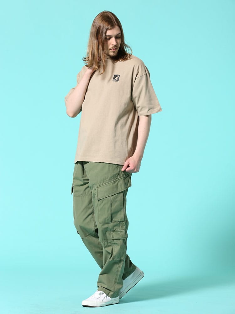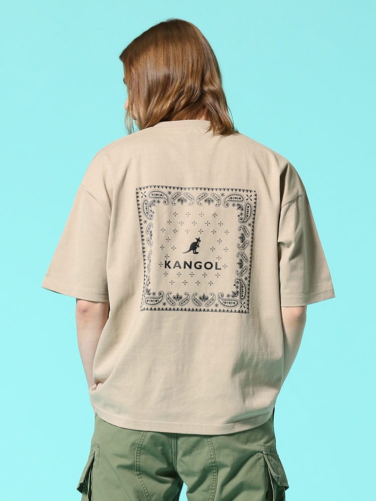 オーバーサイズシルエットのKANGOLの天竺 ペイズリープリント クルーネック 半袖 Tシャツ。バックのペイズリープリントがお洒落な一枚。左胸のロゴもポイントです。首元はベーシックなクルーネック。肌触りの良いコットン生地を使用しています。