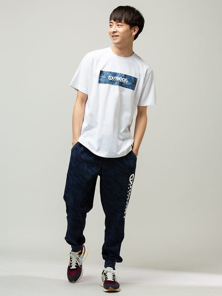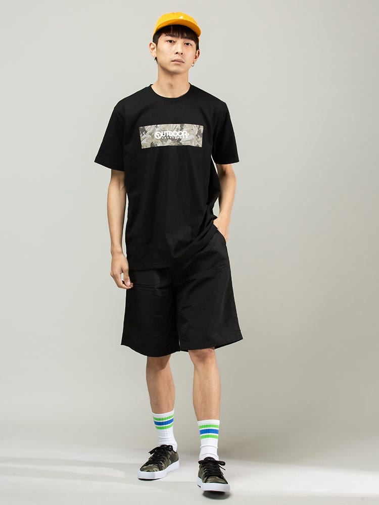 天竺編みで仕上げたOUTDOOR PRODUCTSのスクエア迷彩 クルーネック 半袖 Tシャツ。フロントのスクエア迷彩ロゴプリントがポイントになったアイテム。首元はベーシックなクルーネックデザイン。生地には肌触りの良いコットン生地を使用しています。