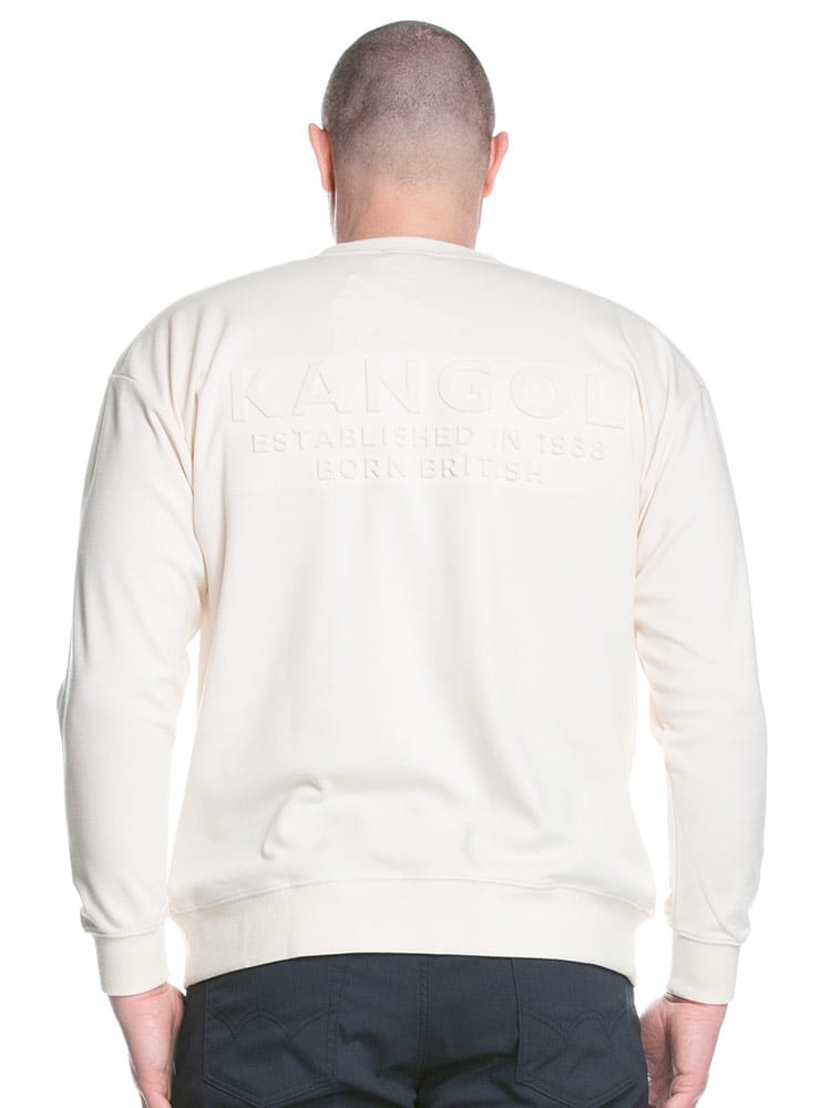 バックの立体的なエンボスロゴが特徴的なKANGOLの長袖トレーナー。フロント左胸のロゴプリントもポイントです。首元はベーシックなクルーネックデザイン。袖、裾はリブ。カジュアルスタイルにおすすめのアイテムです。