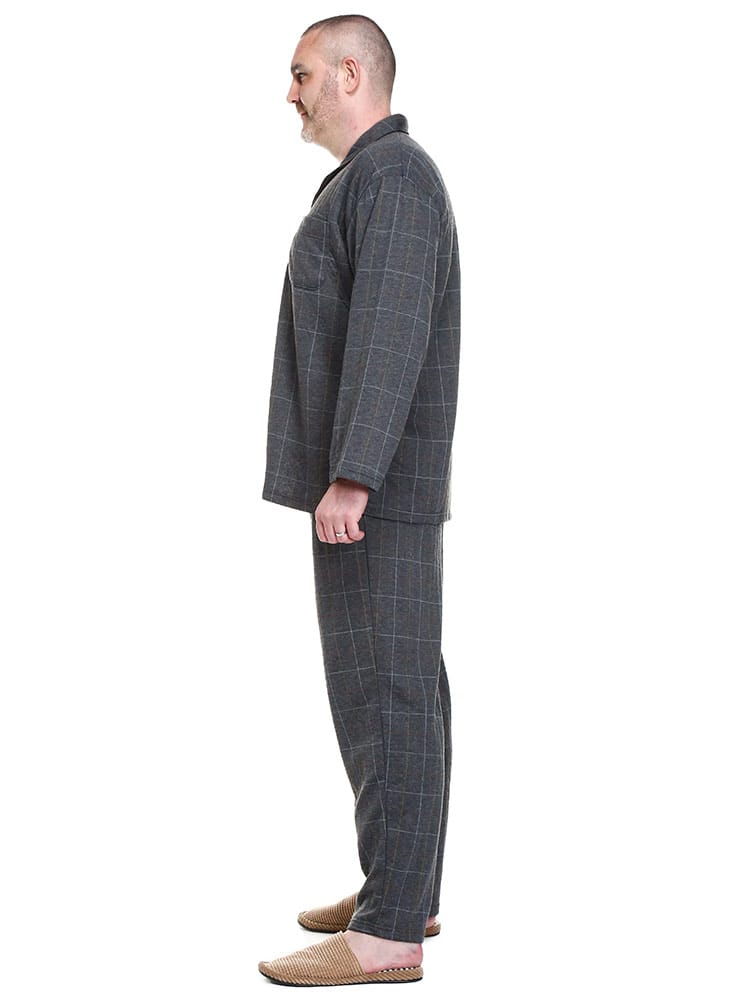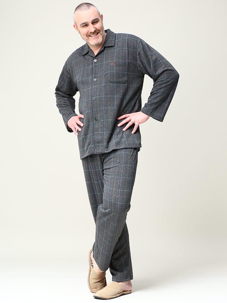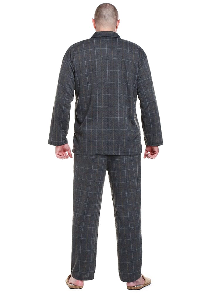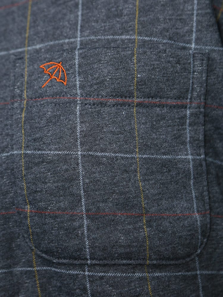 アーノルドパーマーのキルト無地パジャマです。シンプルな前開きタイプの上着とウエストゴム付きのゆとりある柔らかな質感のパジャマ。上下ともに入った格子柄が落ち着いた雰囲気。左胸ポケットにはアイコンであるアンブレラマークが刺繍されています。