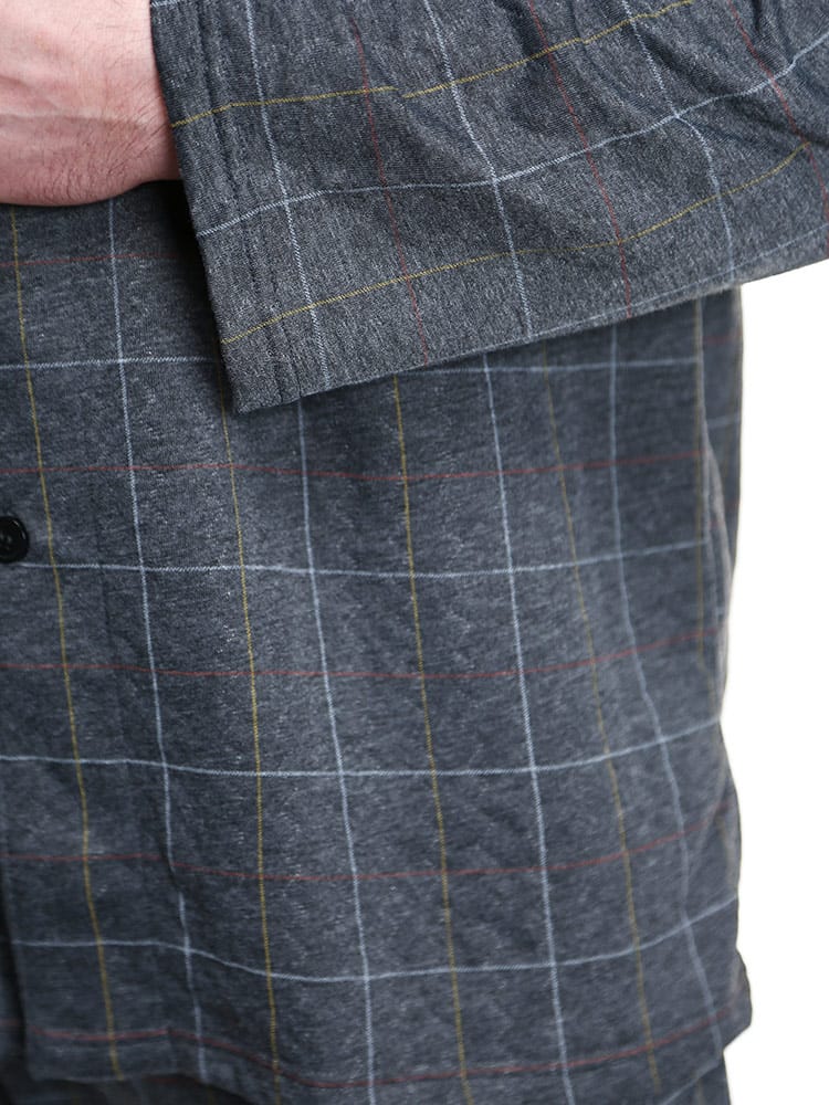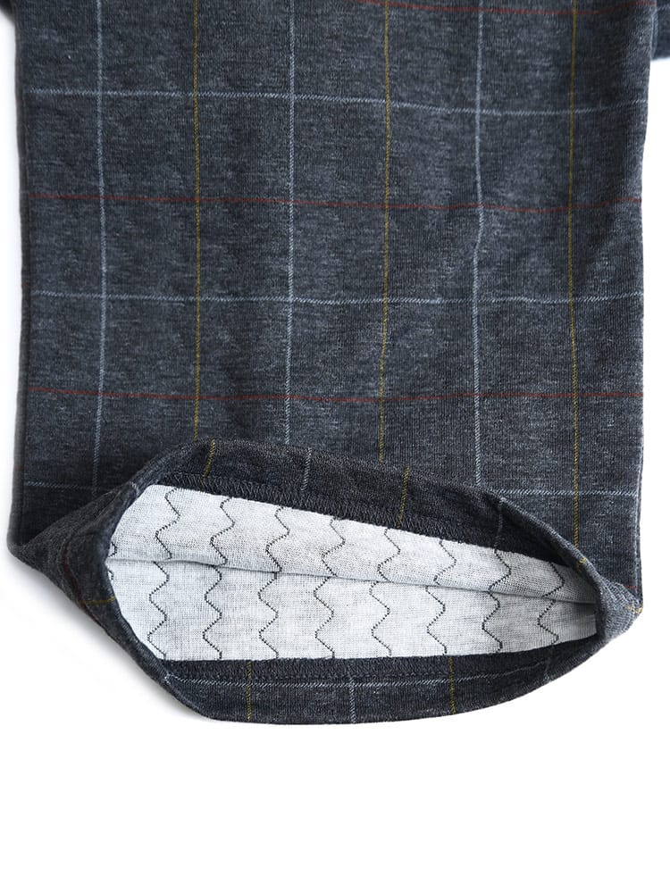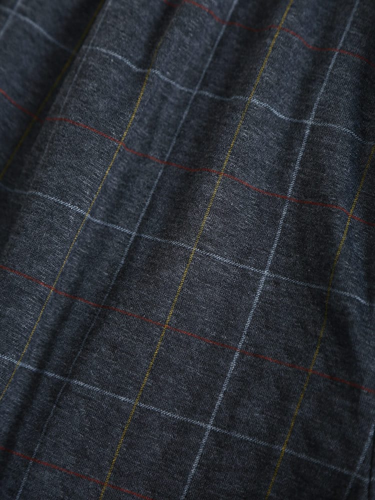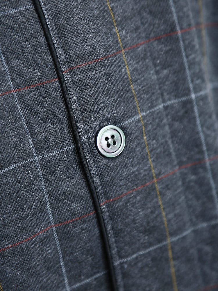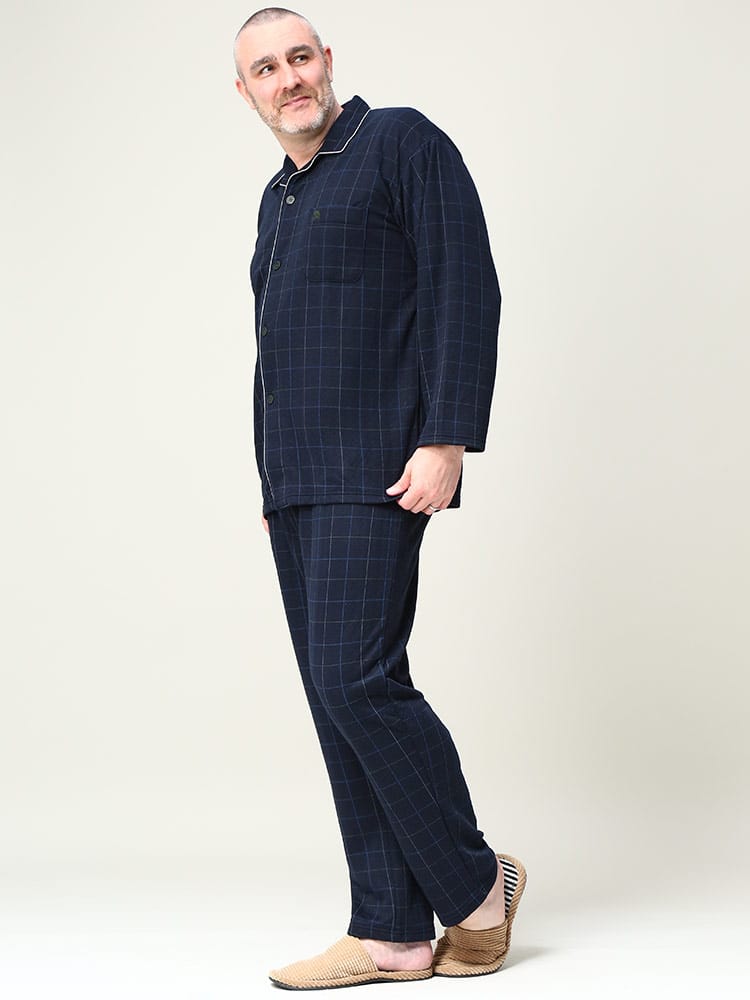 アーノルドパーマーのキルト無地パジャマです。シンプルな前開きタイプの上着とウエストゴム付きのゆとりある柔らかな質感のパジャマ。上下ともに入った格子柄が落ち着いた雰囲気。左胸ポケットにはアイコンであるアンブレラマークが刺繍されています。